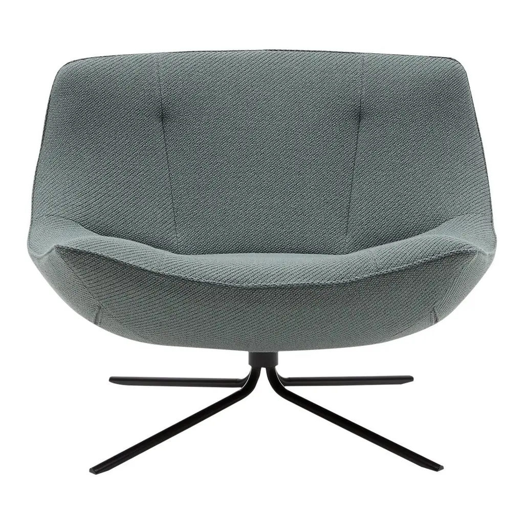 With a soft and round shape defined between four lines VERA is a welcoming and eye-catching lounge chair. The seat- and backrest is visually divided into six distinct areas that create a beautiful contrast to the round and organic surface that make up the outside of the chair. An elegant swivel base gives the chair a light expression in spite of the generous and comfortable size of the seat. Depending on the fabrics and chosen VERA can be used as a focal point in the interior decoration or more quietly blending in with other furniture.