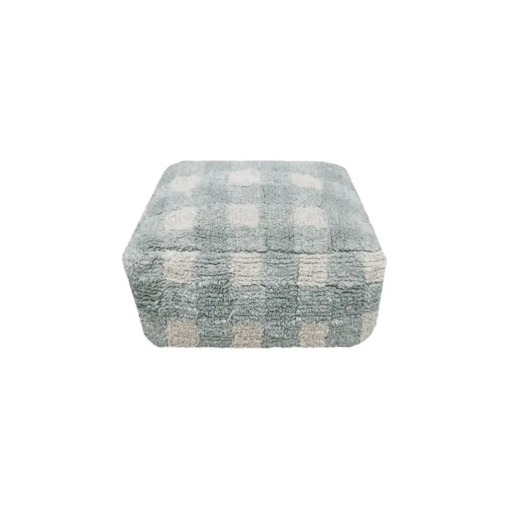 In a timeless French Vichy pattern and soft pile cotton tuft, the Vichy Blue Sage Pouf is an inviting accent in any living space. Fluffy enough for sitting, lounging or playing but completely washable and removable with a zippered cotton canvas cover in a beautiful calming Blue Sage hue. Filled with polystyrene pearls for an extra cushioned feel.