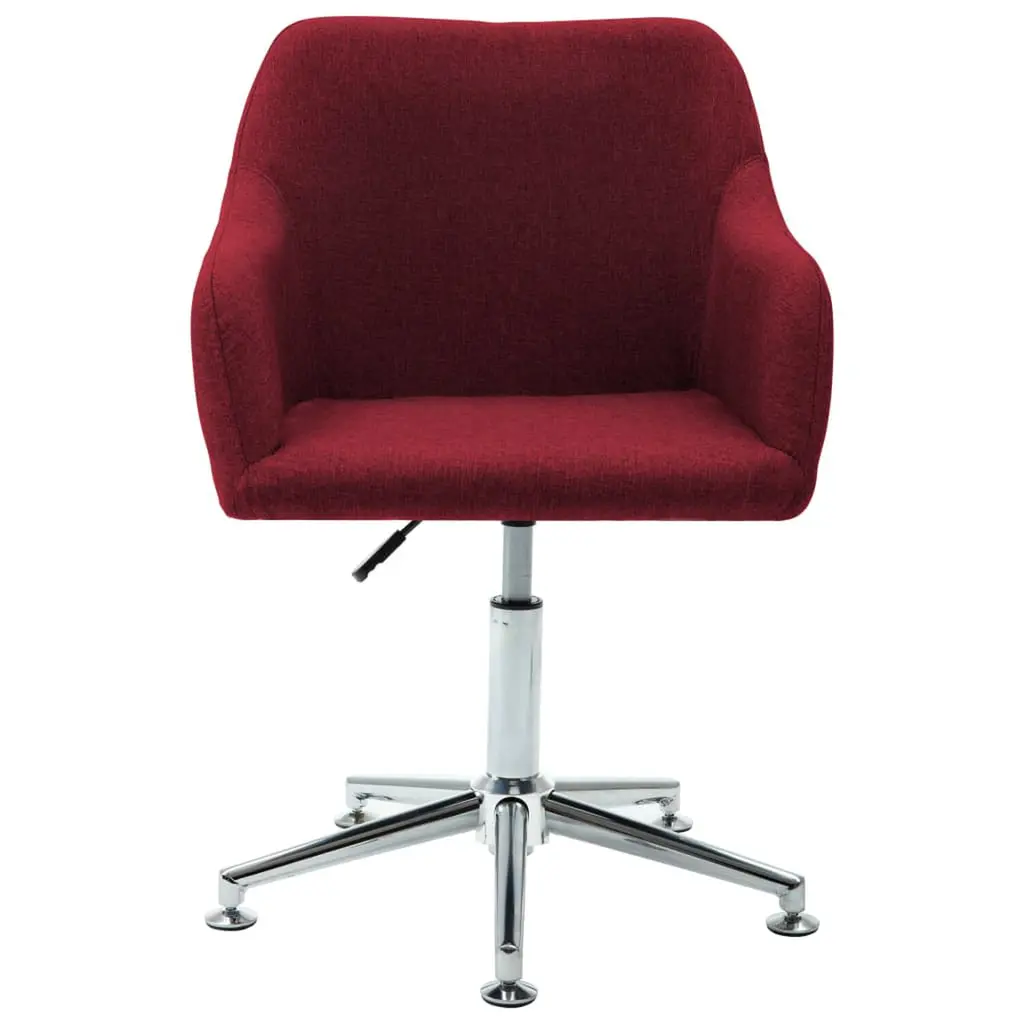 This swivel dining chair is all about mixing comfort and style, making it spot on for adding a dash of elegance to your dining or working area. With its eye-catching wine red fabric and polished grey steel legs, it's made to not just match modern decors but also give you a comfy sit. Stylish Design: The bright wine red fabric makes a bold statement in any room, with a matte finish that gives it a modern twist.Adjustable Height: Use the handy lever to change the chair height from 16.5 in. to 22.0 in. to suit you.Swivel Functionality: The 360-degree swivel lets you move easily and reach items without hassle, great for busy spaces.Durable Materials: Made with a strong steel frame that holds up to daily use while providing a smooth touch surface.Comfortable Seating: The cushioned seat and plush armrests give great comfort during long hours of use, whether eating or working.