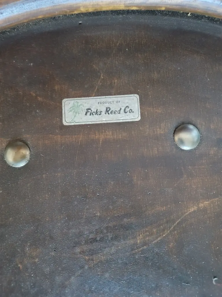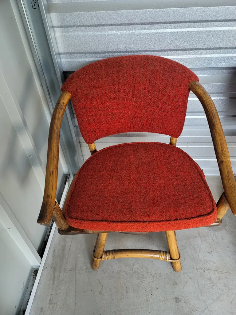 Vintage Bohemian Boho Style Rattan Swivel Chair Red upholstery by Ficks Reed.