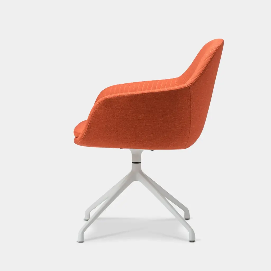 A swivel base gives this Visu Wide seating a workplace flexibility while cushioned upholstery augments its ergonomically engineered comfort. From Danish brand Muuto, the generously proportioned chair conceived by Helsinki-based Mika Tolvanen aptly essays form melding with function. The designer's keen standard even extends to its very name: Visu is the Danish word for "precision".