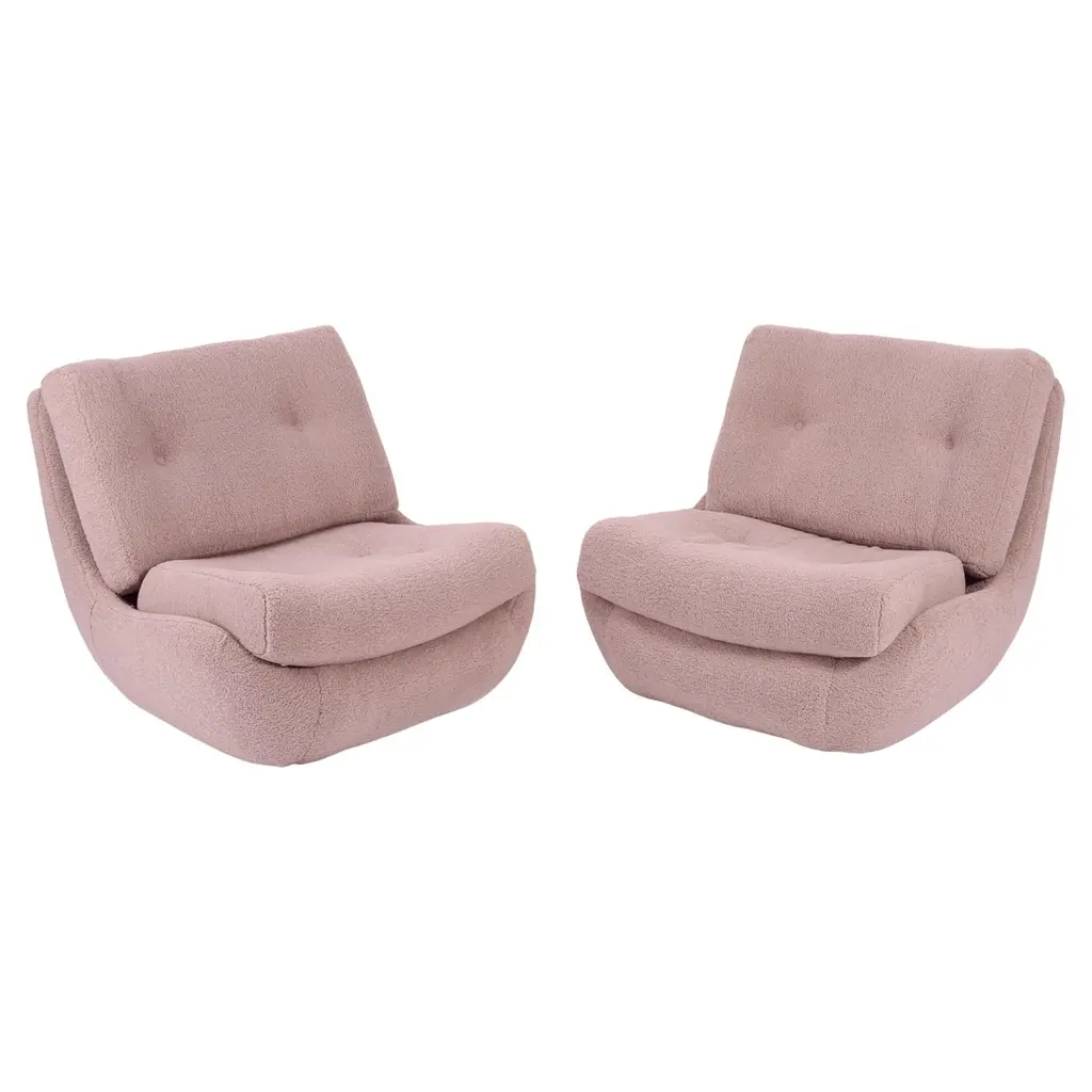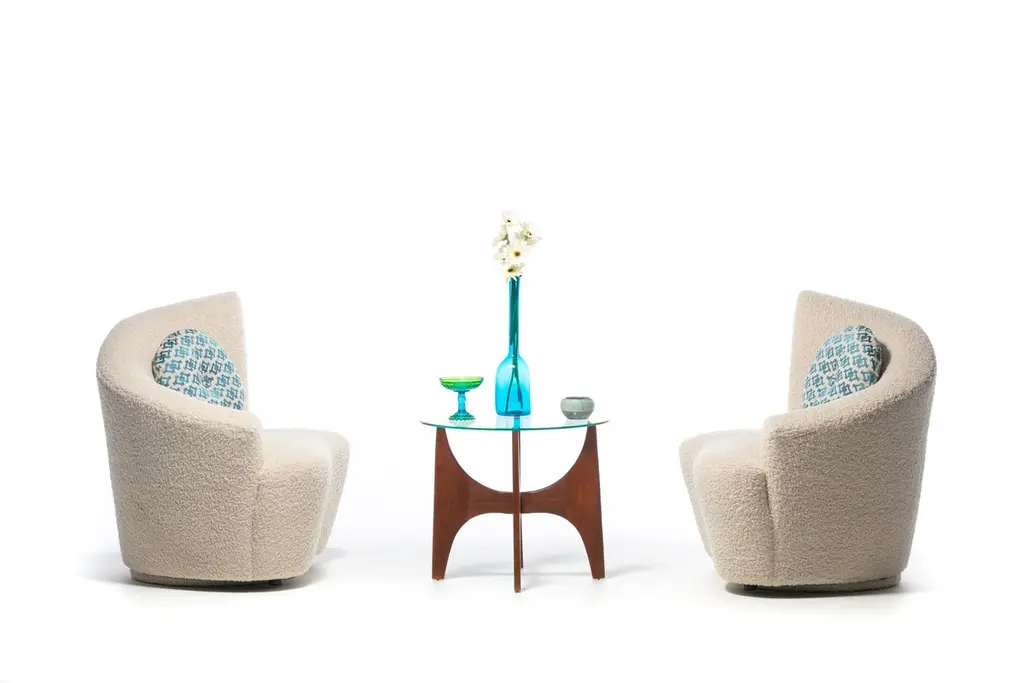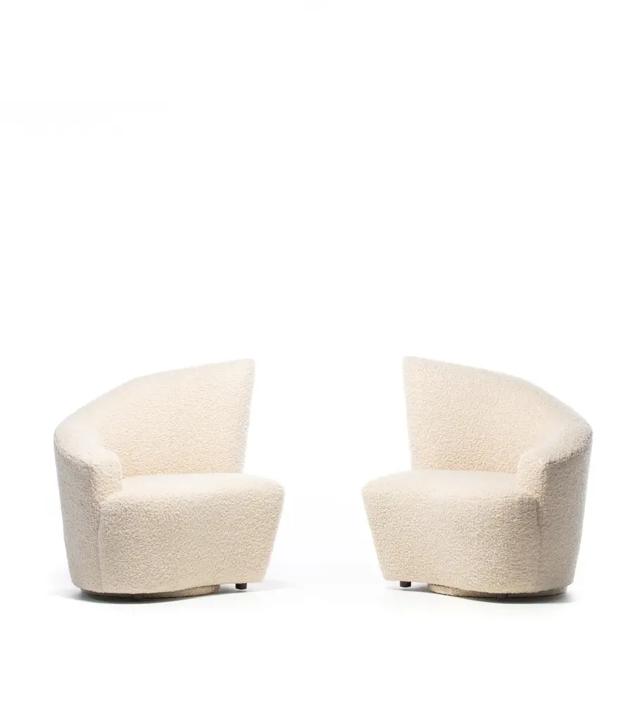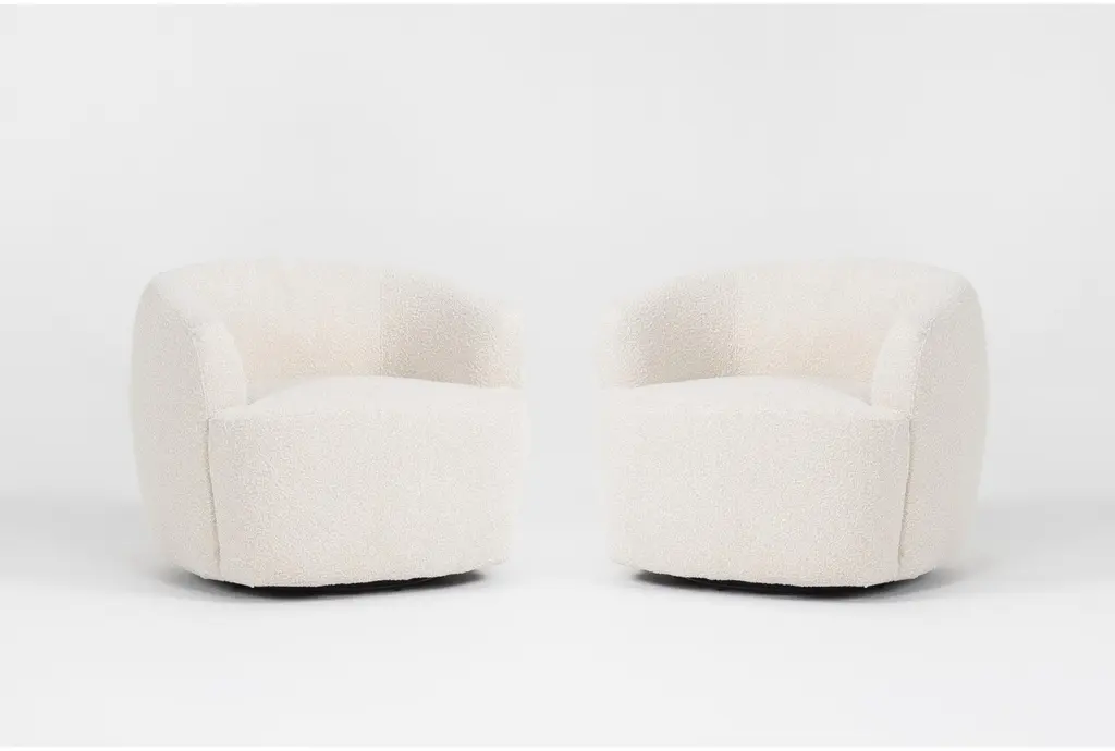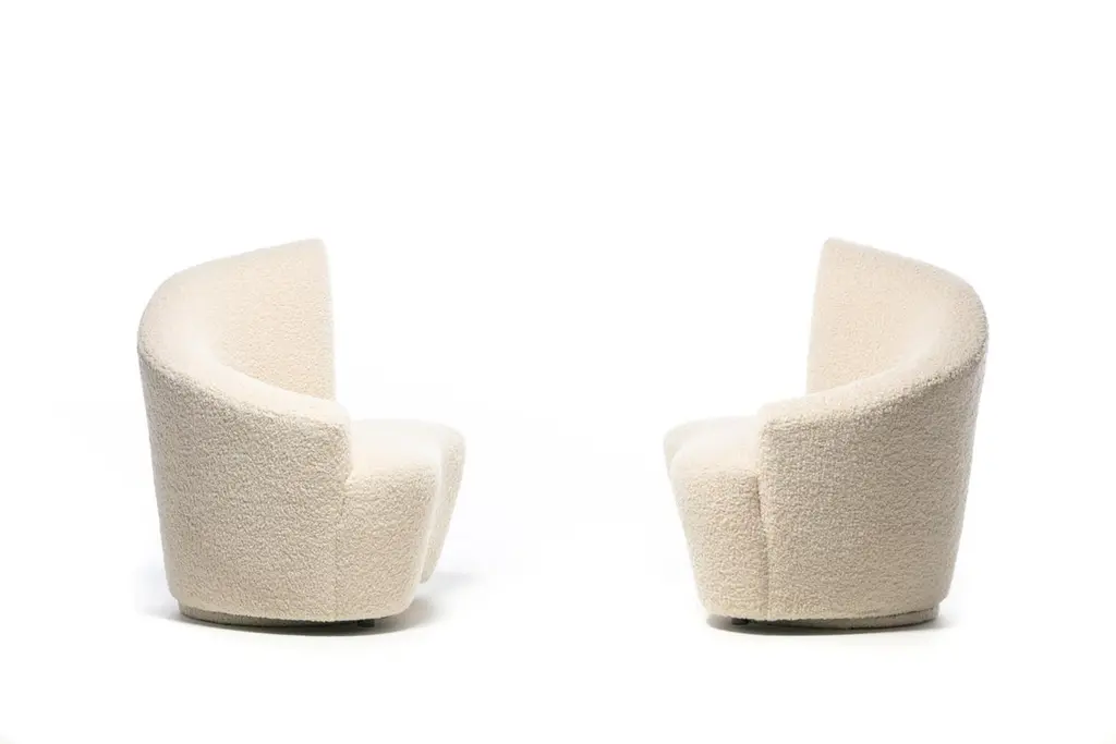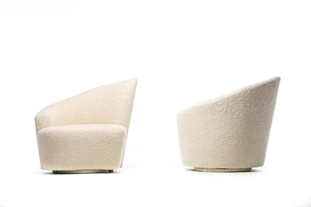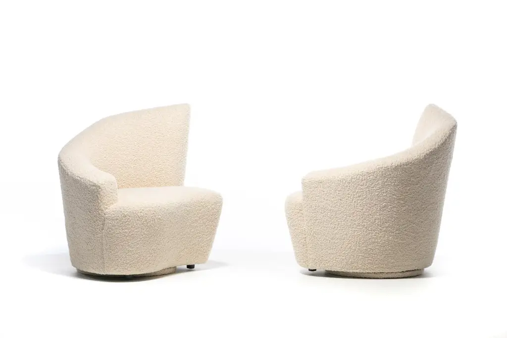 Vladimir Kagan Bilbao Swivel Slipper Chairs In Ivory Bouclé