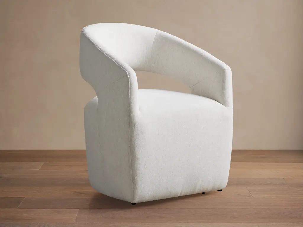 Dinner conversations will linger because your guests are so comfortable around your table. The Vuelta Swivel chairs are fully upholstered in light Taupe velvet with deep cushions and a softly curved back. The chair sits on a conical base that rests on an Almost Black plinth.