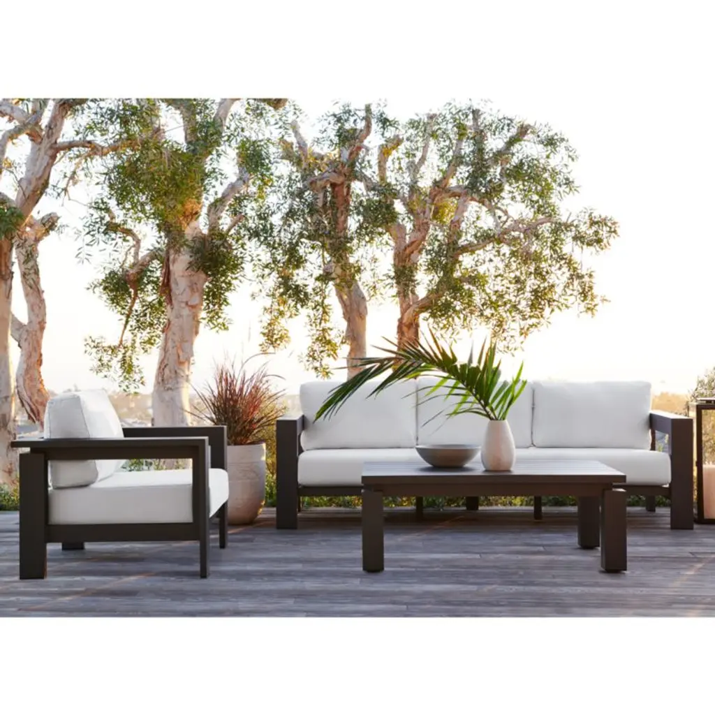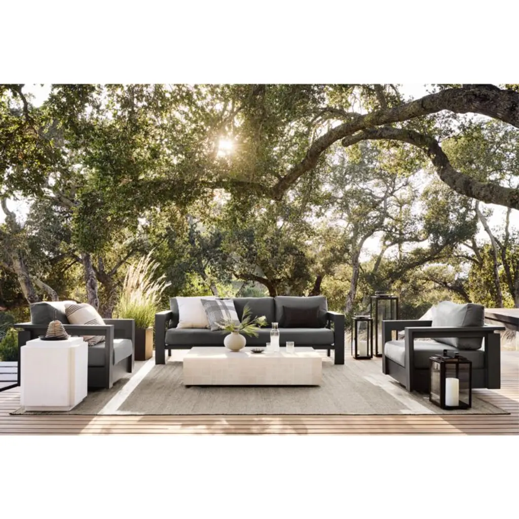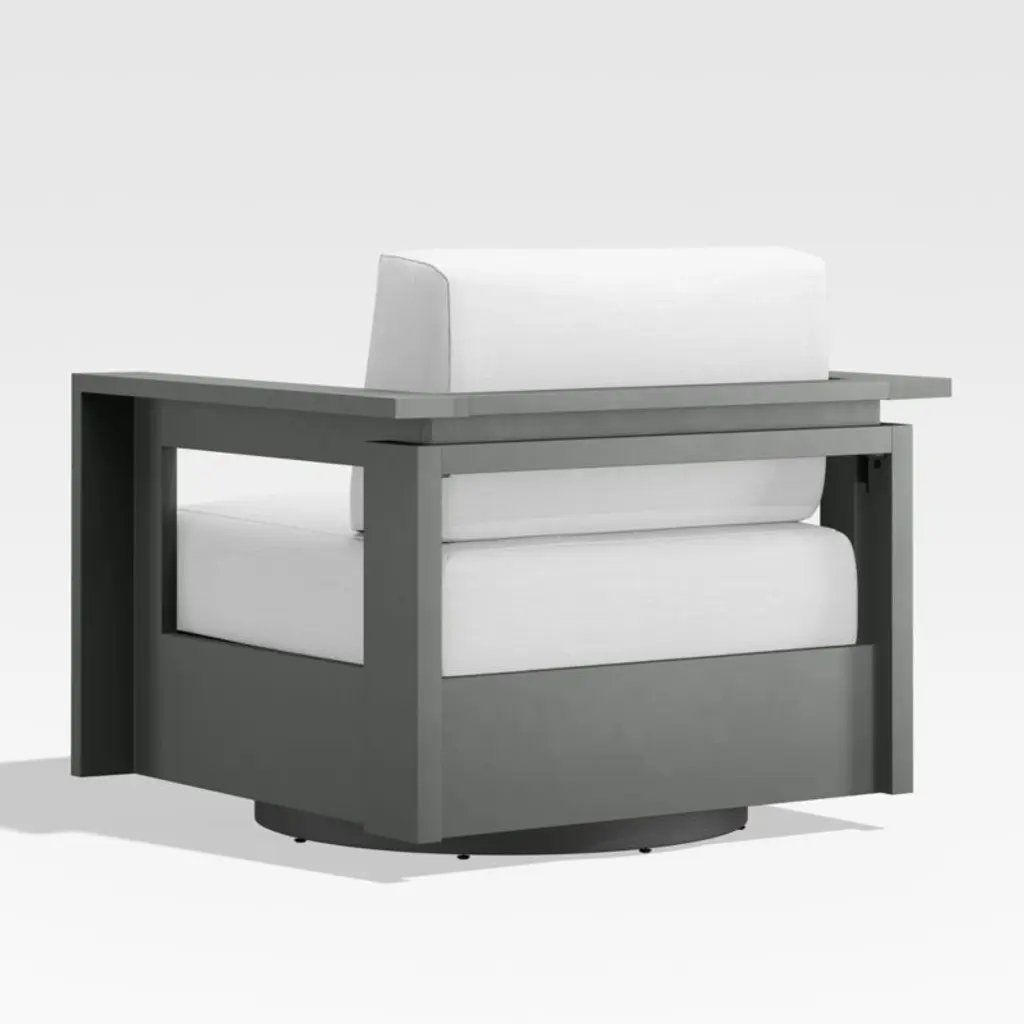 Well-made, great-looking and super comfortable. Our Walker outdoor collection is a customer favorite that checks all the boxes. Built to stand up to the elements, the swivel chair is made of rustproof aluminum treated with a durable and stylish matte powdercoat finish. Cushions in your color choice of stain-resistant Sunbrella fabric let you sink back and relax in deep-seated comfort. A modern classic, Walker is designed with architectural lines, wide armrests and recessed detailing.