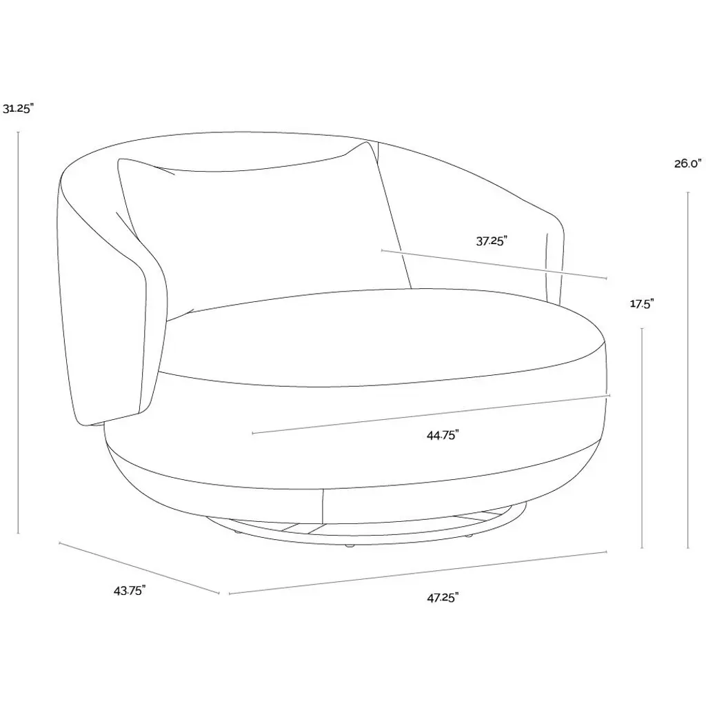 Boasting a beautiful, curvaceous shape, this swivel lounge chair is both contemporary and effortlessly trendy. Stocked in effie linen and smoke fabrics, and completed with a black powder coated steel base.