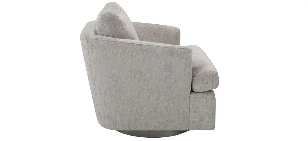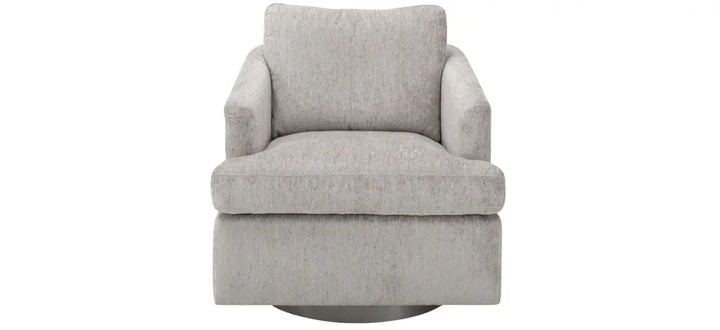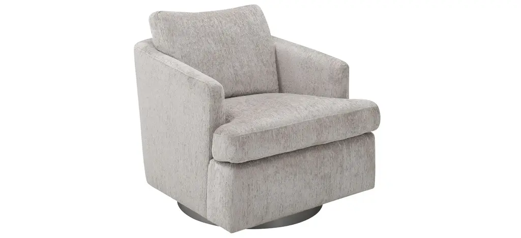 Classic tradition meets modern style with the Warren swivel chair. Sumptuous top-grain leather, high-density seat cushions and distinctive inset piping on the track arms set the stage for this timeless and tasteful design. Medium gray leather and a walnut finish on the base provide a beautiful base for a neutral color scheme in your home.