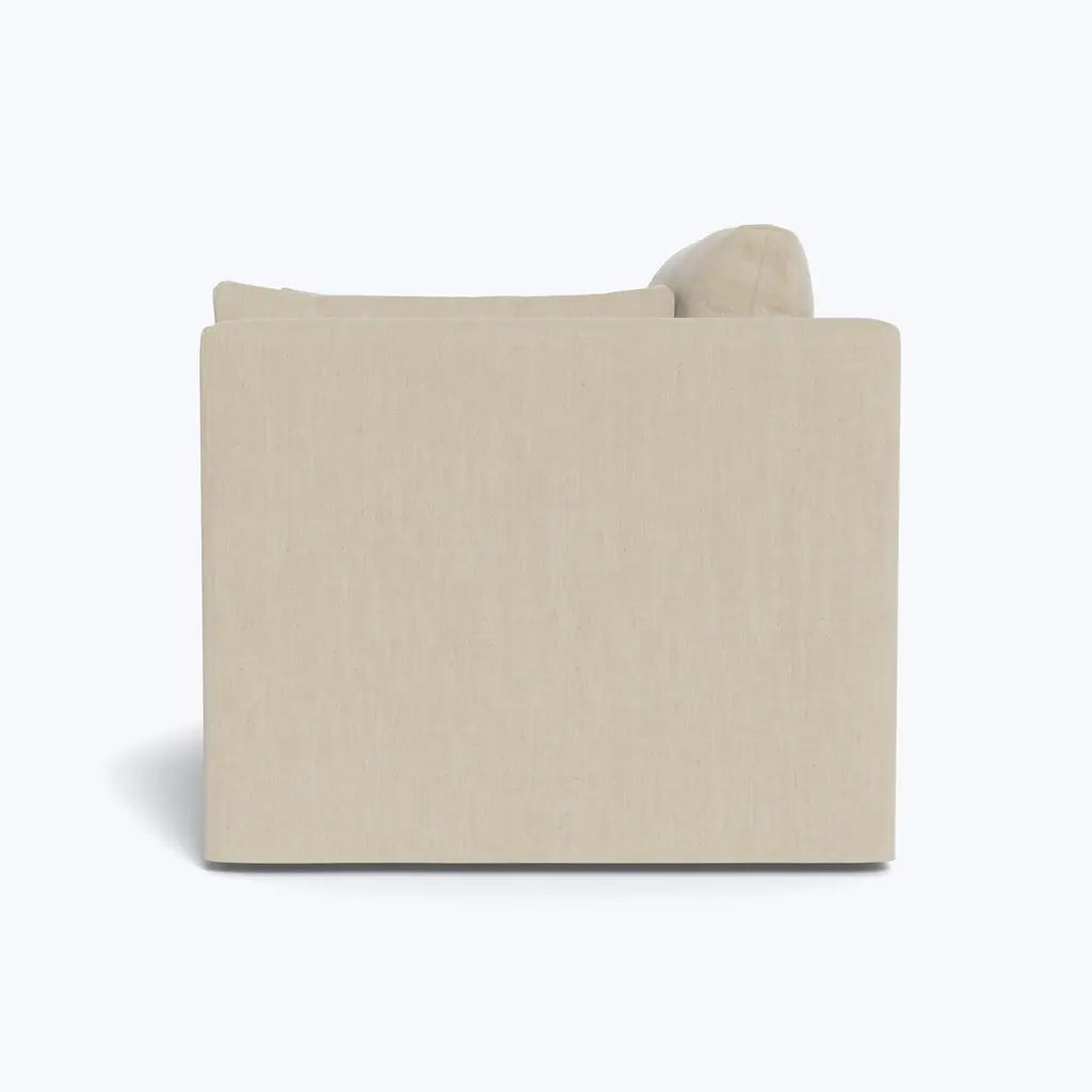 Experience the luxurious blend of comfort and contemporary design with the Watermill Slipped Swivel Chair, an exclusive offering from abc carpet & home. This swivel armchair offers unparalleled coziness within its sleek, clean-lined silhouette, perfect for lounging or as a chic reading nook. Designed to effortlessly integrate with other pieces from the Watermill Collection, it provides endless opportunities for creating your ideal seating arrangement. Crafted with meticulous attention to detail, the Watermill Slipped Swivel Chair features blend-down cushions that combine the resilience of dense foam with the sumptuous softness of feather down. These cushions are meticulously washed to meet hypoallergenic standards, ensuring a comfortable and safe environment for you and your loved ones. The sustainably sourced Goodwood frame underscores our commitment to environmentally responsible manufacturing practices, inviting a lifetime of cherished memories made at home. Designed for convenience and practicality, this chair comes complete with a removable slipcover, making cleaning and changing your decor a breeze. Available in 35+ colors and an array of fabric options from performance velvet to linen, this ottoman is fully customizable to suit your style preferences. With dimensions of 47 inches in width and 33 inches in height, with a seat height of 17 inches and a seat depth of 24 inches, this chair provides ample space for relaxation. The Graceland Sorrell color option adds a touch of sophistication, while the durable 100% polyester material ensures longevity and easy care. Proudly made in the USA, this chair exemplifies quality craftsmanship and attention to detail. Care instructions are straightforward: spot clean with mild detergent, and for deeper cleaning, professional services are recommended. Regular vacuuming helps maintain its pristine appearance for years to come. Specifications include foam-wrapped seat cushions with a blend of fiber and feather/down for even fill distribution, and back cushions featuring a fiber and feather blend encased in a down-proof casing. The fill is Responsible Down Standard certified and meets USDA hypoallergenic regulations, guaranteeing peace of mind for allergy sufferers. Additionally, this chair is free from flame retardant chemicals, prioritizing safety and environmental sustainability. Whether you're hosting guests or simply enjoying a quiet evening at home, the Watermill Slipped Swivel Chair from Cobble Hill effortlessly enhances any space.