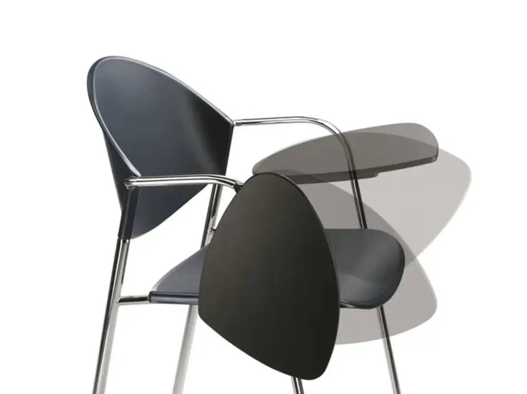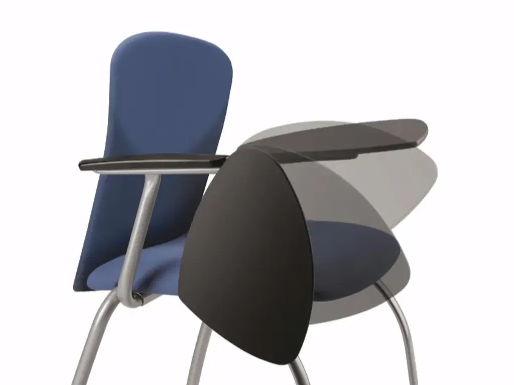 Webby 332 TDX - Plastic training chair with armrests with writing tablet.Webby - Stacking Chairs, nylon F.R. monocoque available in various colors.Sled or 4 legs metal base with or without arms.For version Webplus body covered in F.R. interlaced flexible mesh.Available version with anti-panic writing tablet.Available Stool version and/or 4 legs with castors one.Available swivel version with gas lift and/or with tilt mechanism Compact-Line.Ideal for: conference rooms, meeting tables, schools, cafes, bars, office.Optional: Front panel padded and upholstered seat or seat and back, connecting ganging, left tablet, big size tablet for PC, transport dolly, floor metal bracket alignment.