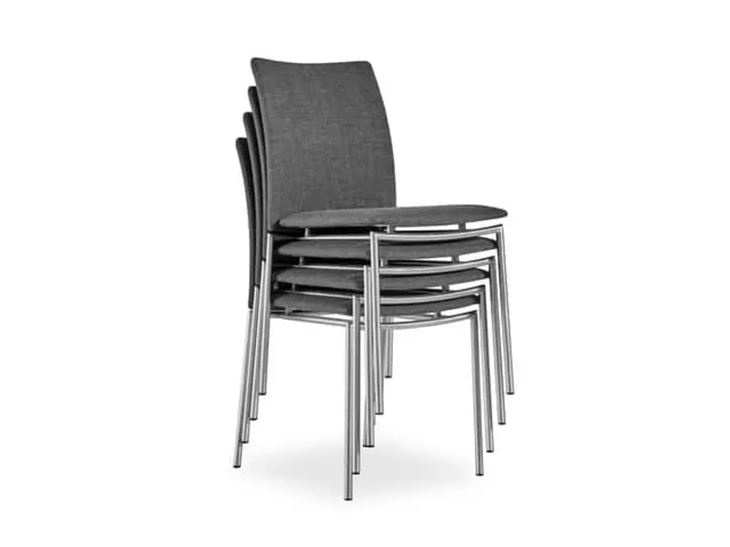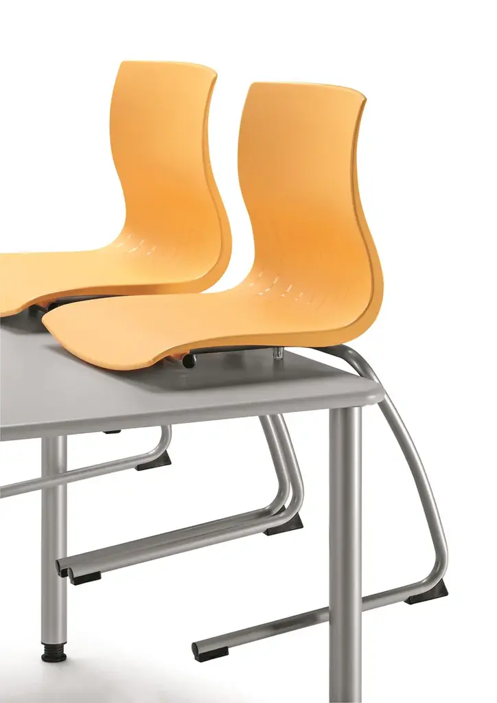 Webby 336 - Cantilever stackable plastic chair.Webby - Stacking Chairs, nylon F.R. monocoque available in various colors.Sled or 4 legs metal base with or without arms.For version Webplus body covered in F.R. interlaced flexible mesh.Available version with anti-panic writing tablet.Available Stool version and/or 4 legs with castors one.Available swivel version with gas lift and/or with tilt mechanism Compact-Line.Ideal for: conference rooms, meeting tables, schools, cafes, bars, office.Optional: Front panel padded and upholstered seat or seat and back, connecting ganging, left tablet, big size tablet for PC, transport dolly, floor metal bracket alignment.