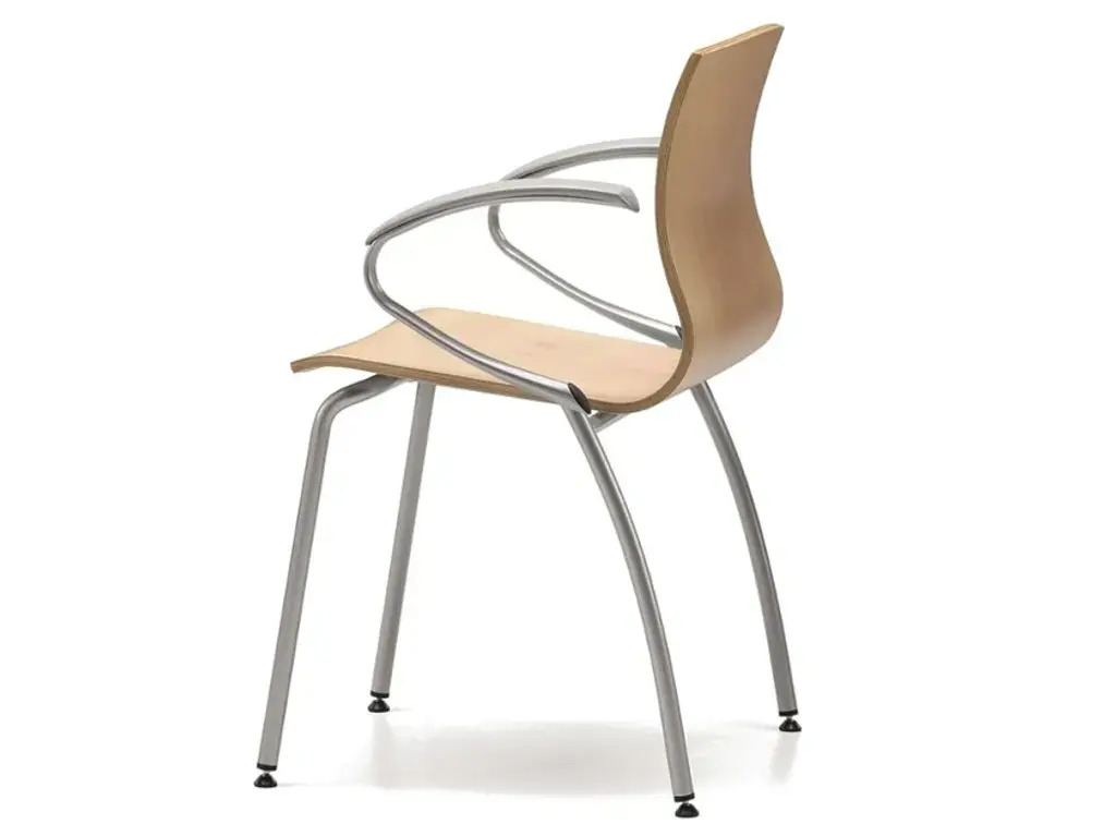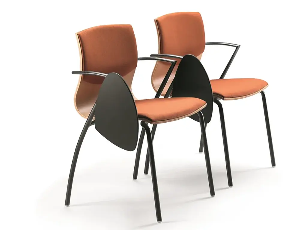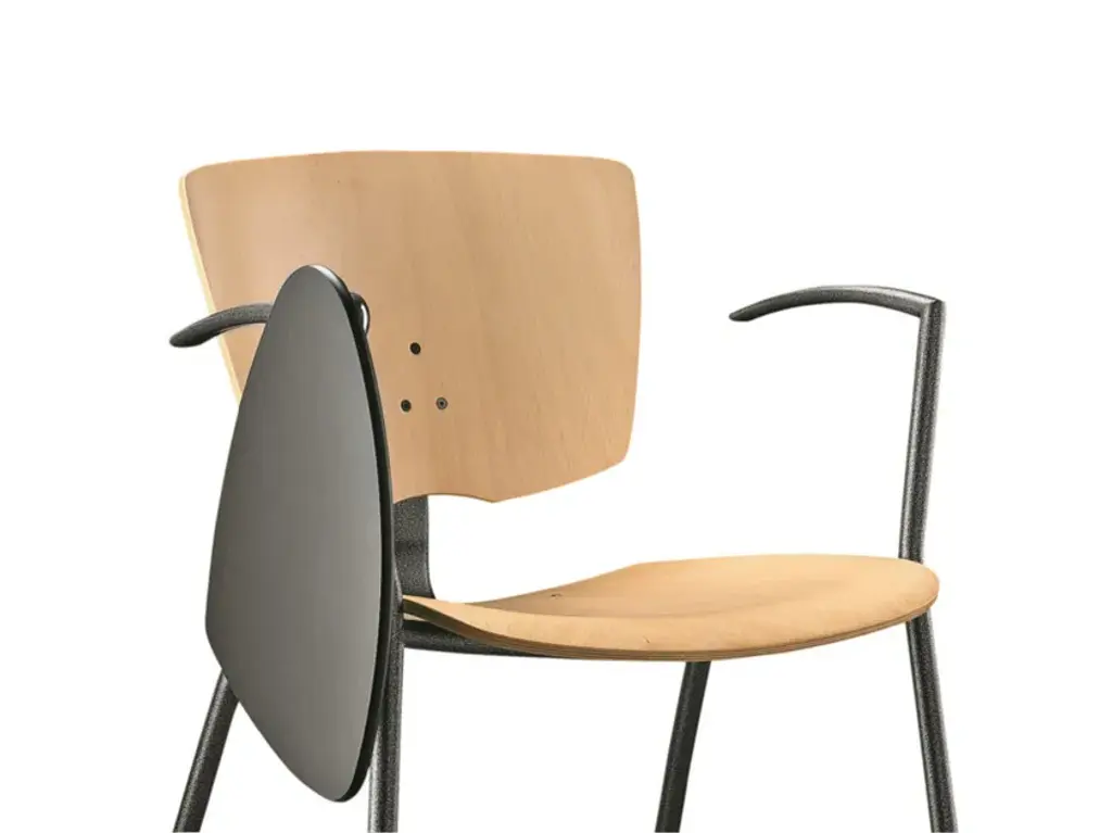 Webwood 358 TDX - Multi-layer wood training chair with armrests with writing tablet.Webwood - Beech plywood stacking chairs monocoque.Sled or 4 legs metal base with or without arms.For Webtop version shell is covered in saddle leather.Available version with anti-panic writing tablet.Available stool version and/or 4 legs with castors.Available swivel version with gas lift and/or with tilt mechanism Compact-Line.Ideal for: conference rooms, meeting tables, interior design, kitchen furniture, schools, cafes, bars, office.Optional: Front panel padded and upholstered seat or seat and back, fully upholstered shell, wenge' or zebrano plywood finish, connecting ganging, left tablet, big size tablet for PC, transport dolly, floor metal bracket alignment.