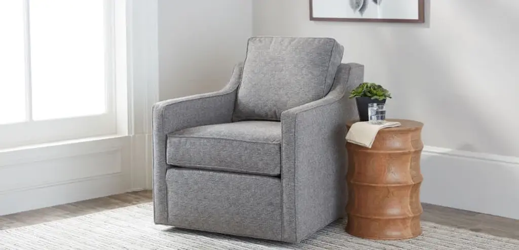 With slim track arms and square wings, our Wes modern swivel armchair has a sweet, simple profile that can play well in any room. It comes with heaps of functionality, too, thanks to its swivel base—Wes has small scale, big presence, and 360-degree views. Choose the fabric that best suits your room (from nursery to den to family room and beyond), and customize it with optional tailored touches like nailhead trim or contrast welting. There’s only one thing better than this versatile chair: a pair of these leather or fabric swivel armchairs for your living room. Also available in leather.
