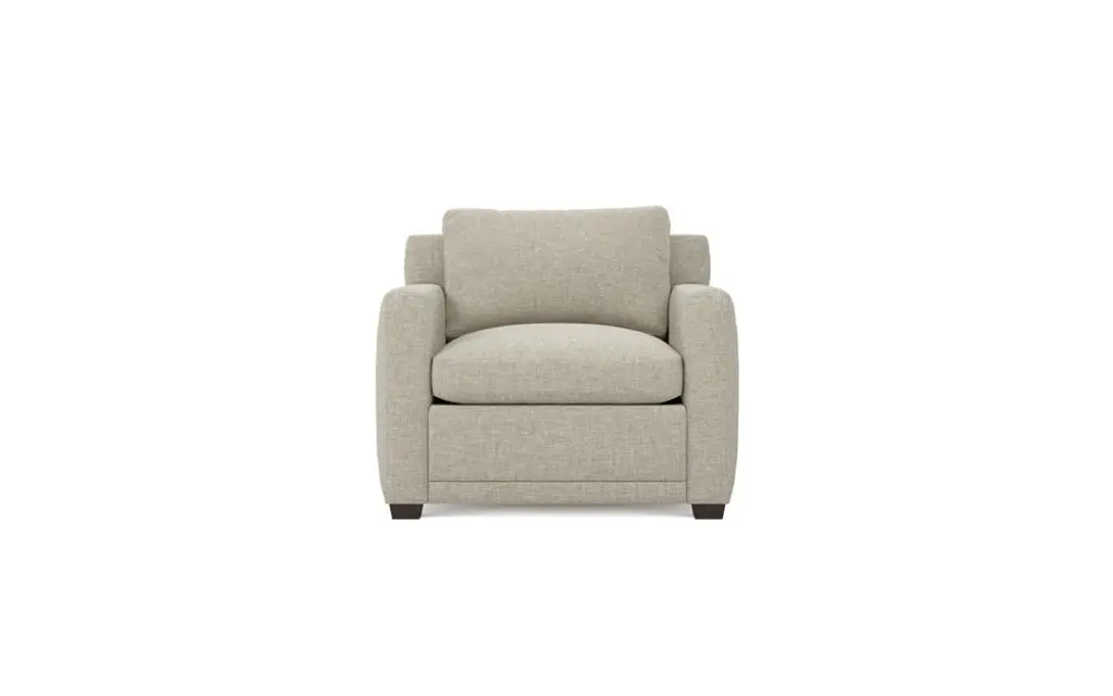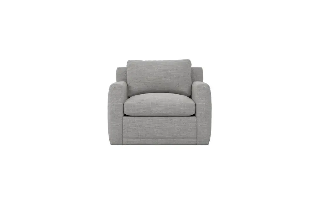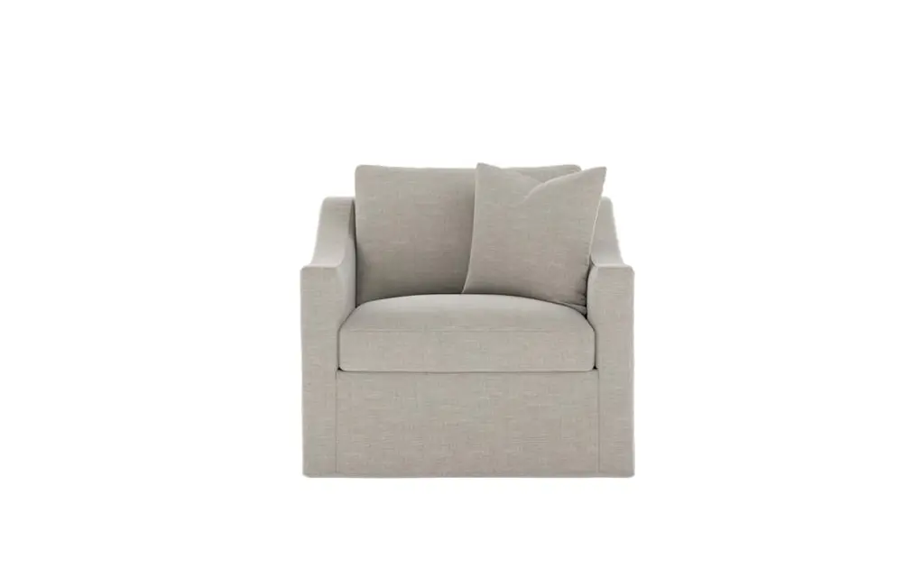 Clean lines and cozy box cushions make the Weybridge swivel chair an instant classic. A swivel base lends a playful, functional touch to the transitional silhouette. Soft and supportive cushioning offers plush, cloud-like comfort, with a foam core surrounded by a blend of fiber, down, and feather fill. Whether styled on its own or as a pair, this inviting chair is an easy addition to any seating area. Choose from a variety of upholstery options, including linen, velvet, and performance fabrics.