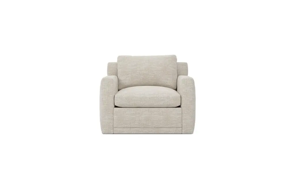 Clean lines and cozy box cushions make the Weybridge swivel chair an instant classic. A swivel base lends a playful, functional touch to the transitional silhouette. Soft and supportive cushioning offers plush, cloud-like comfort, with a foam core surrounded by a blend of fiber, down, and feather fill. Whether styled on its own or as a pair, this inviting chair is an easy addition to any seating area. Choose from a variety of upholstery options, including linen, velvet, and performance fabrics.