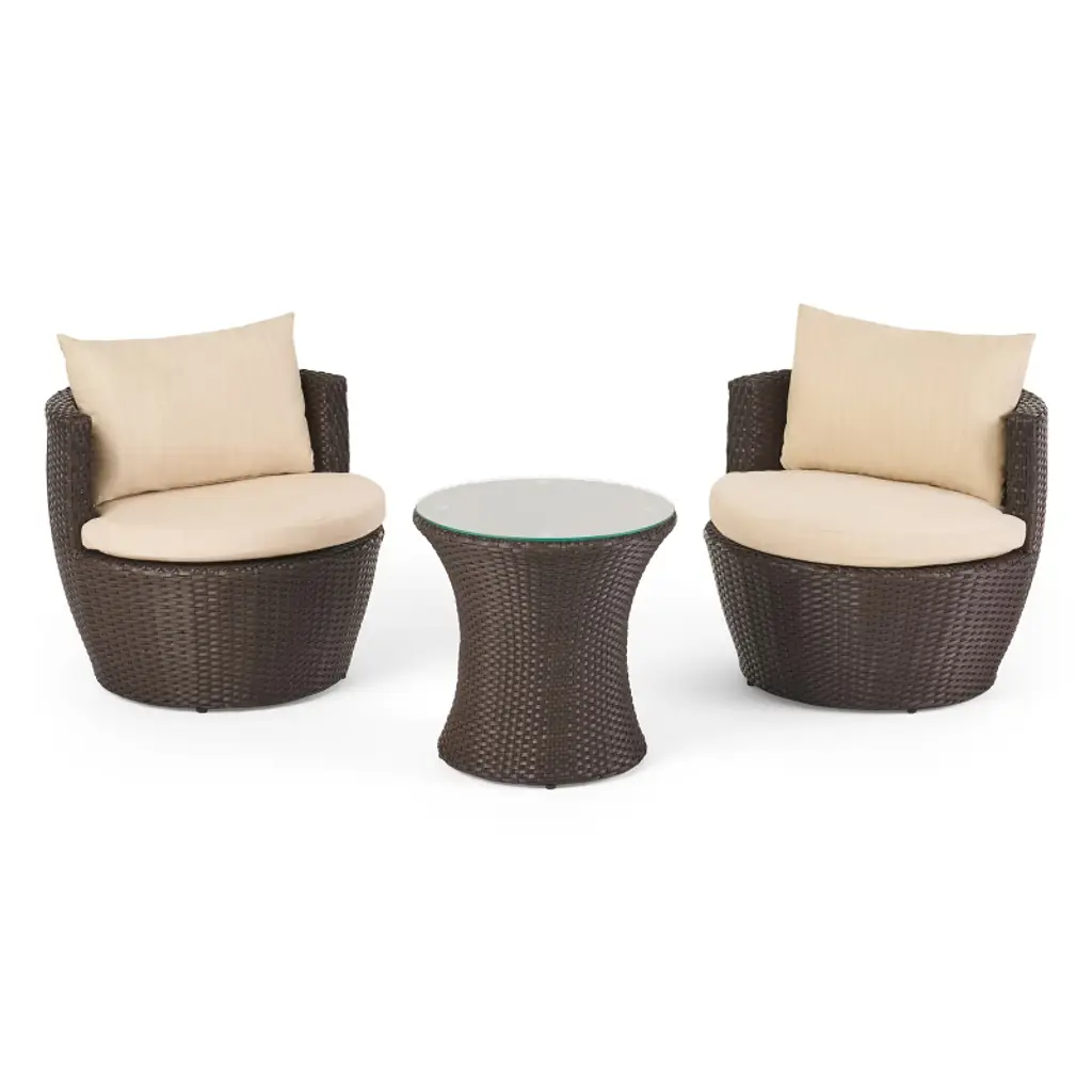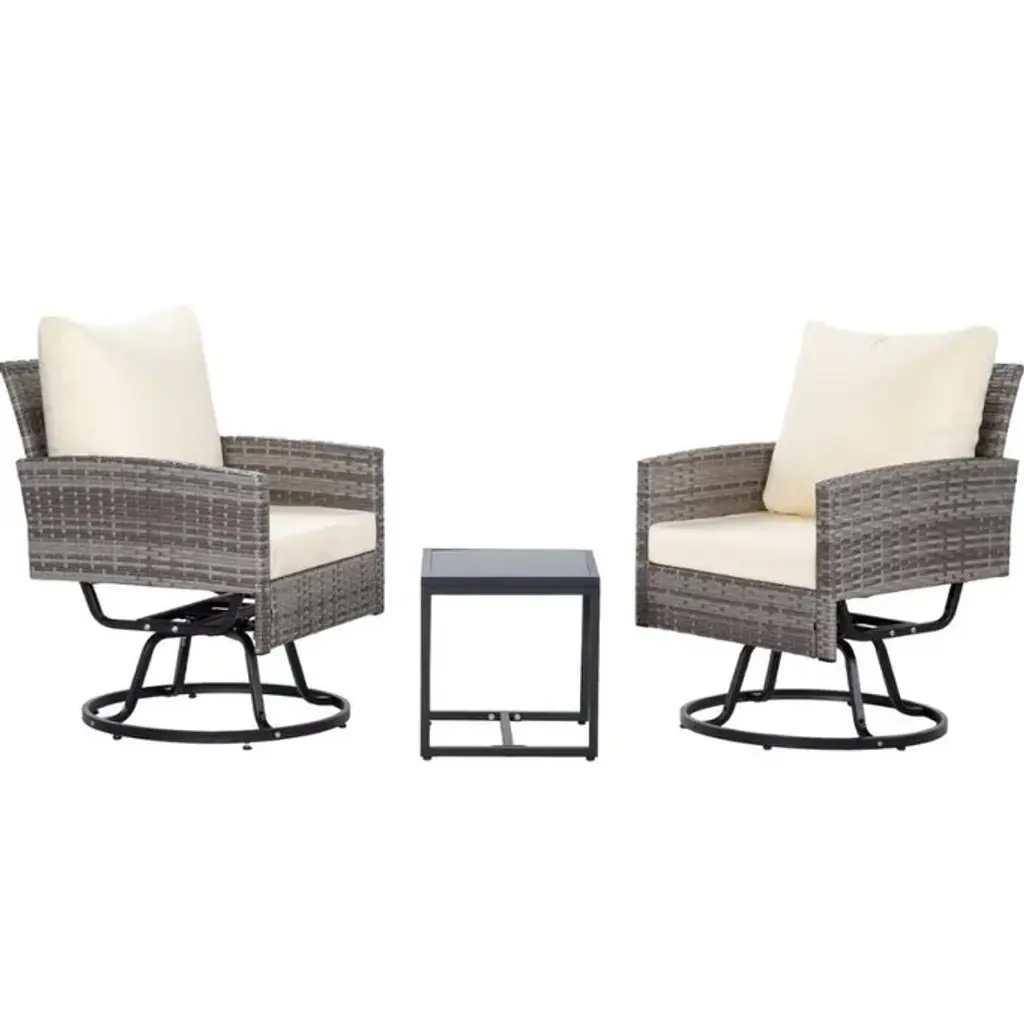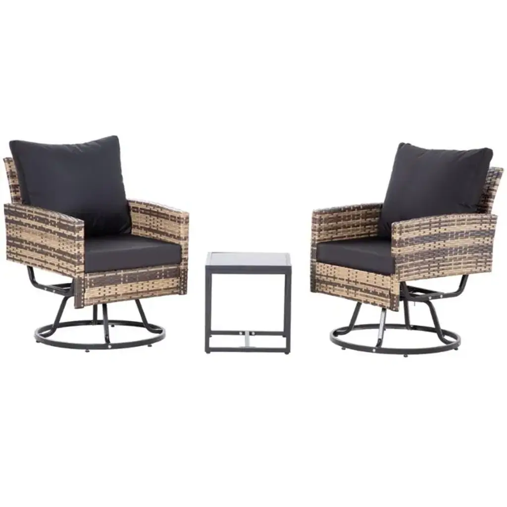 Whizmax 3 Pieces Outdoor Wicker Swivel Rocker Patio Set, 360¡ã Swivel Rocking Chairs Wicker Patio Set With Cushions And Armored Glass Top Side Table