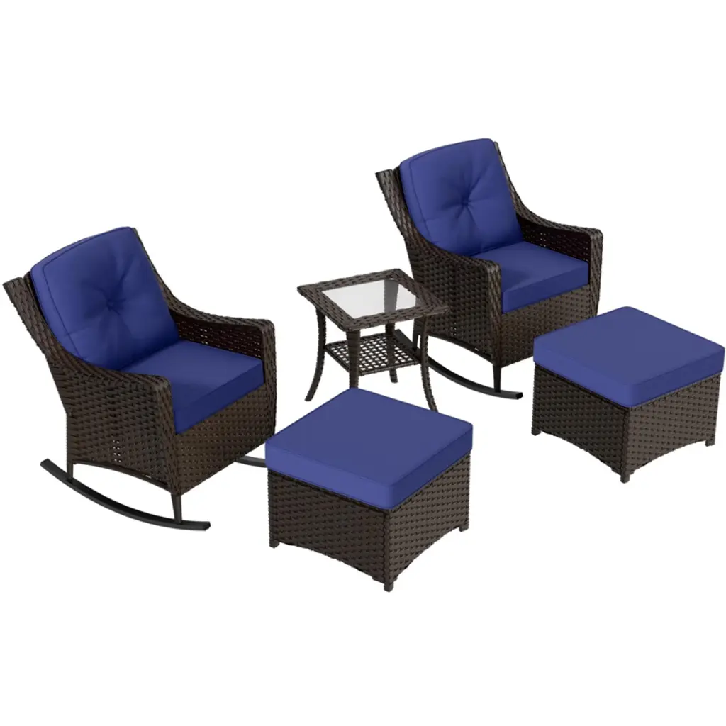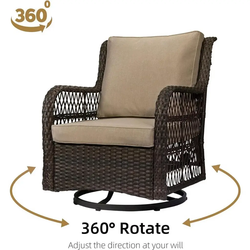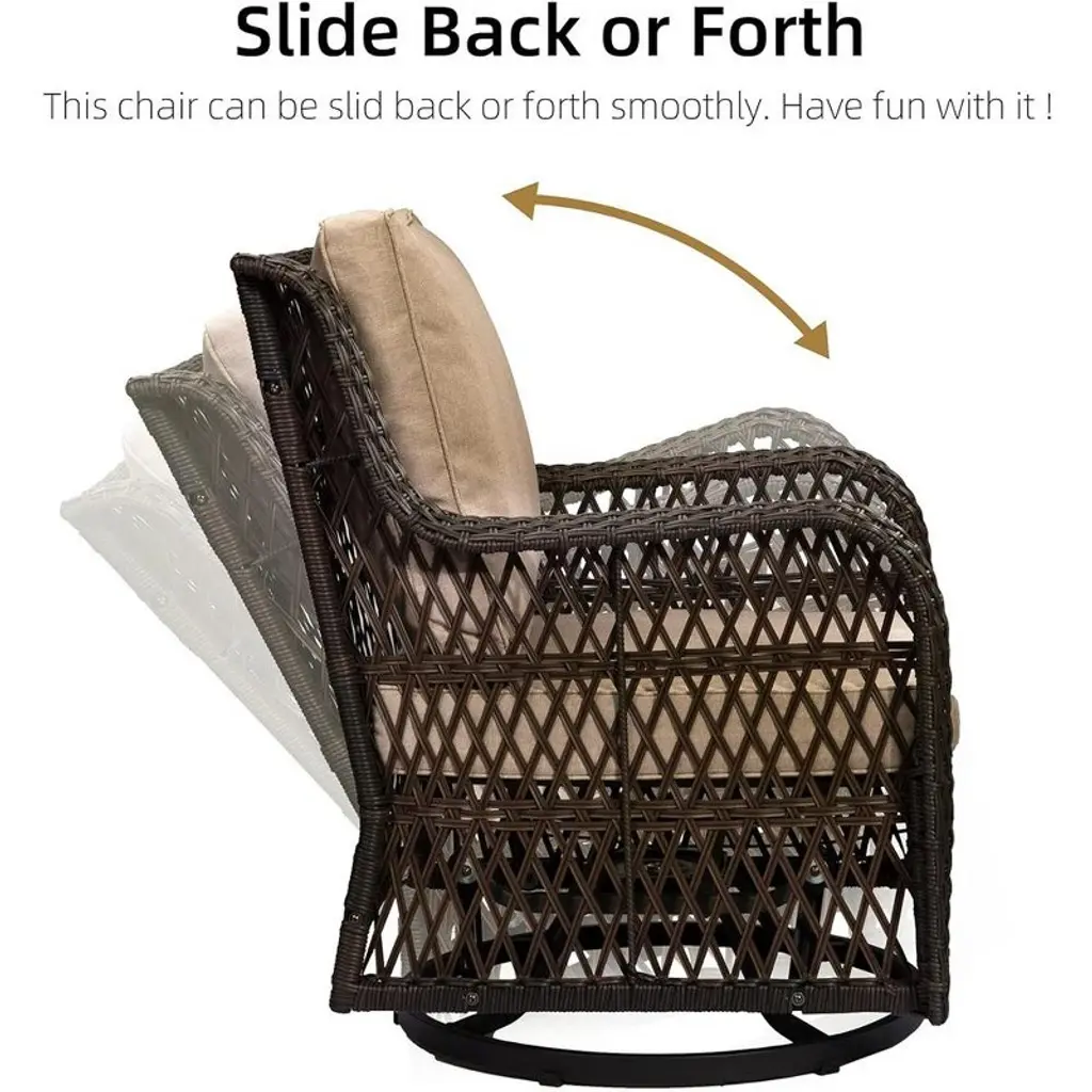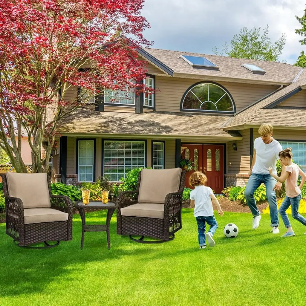 WhizMax 3 Pieces Outdoor Wicker Swivel Rocker Patio Set, 360¡ã Swivel Rocking Chairs Wicker Patio Set with Cushions and Armored Glass Top Side Table