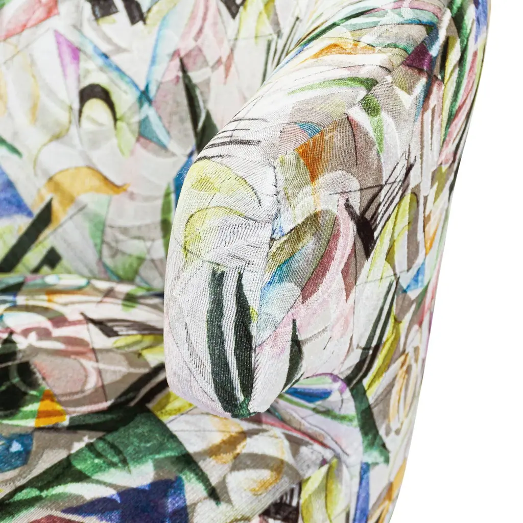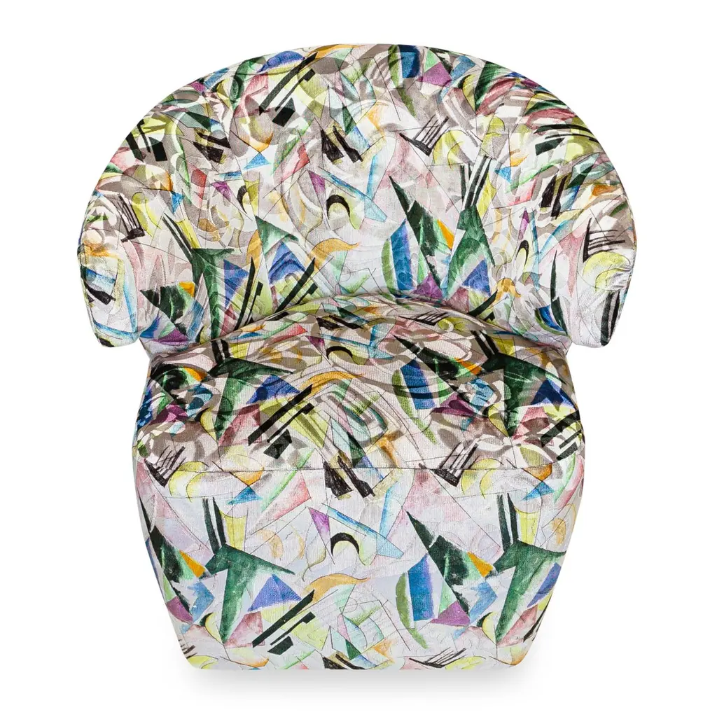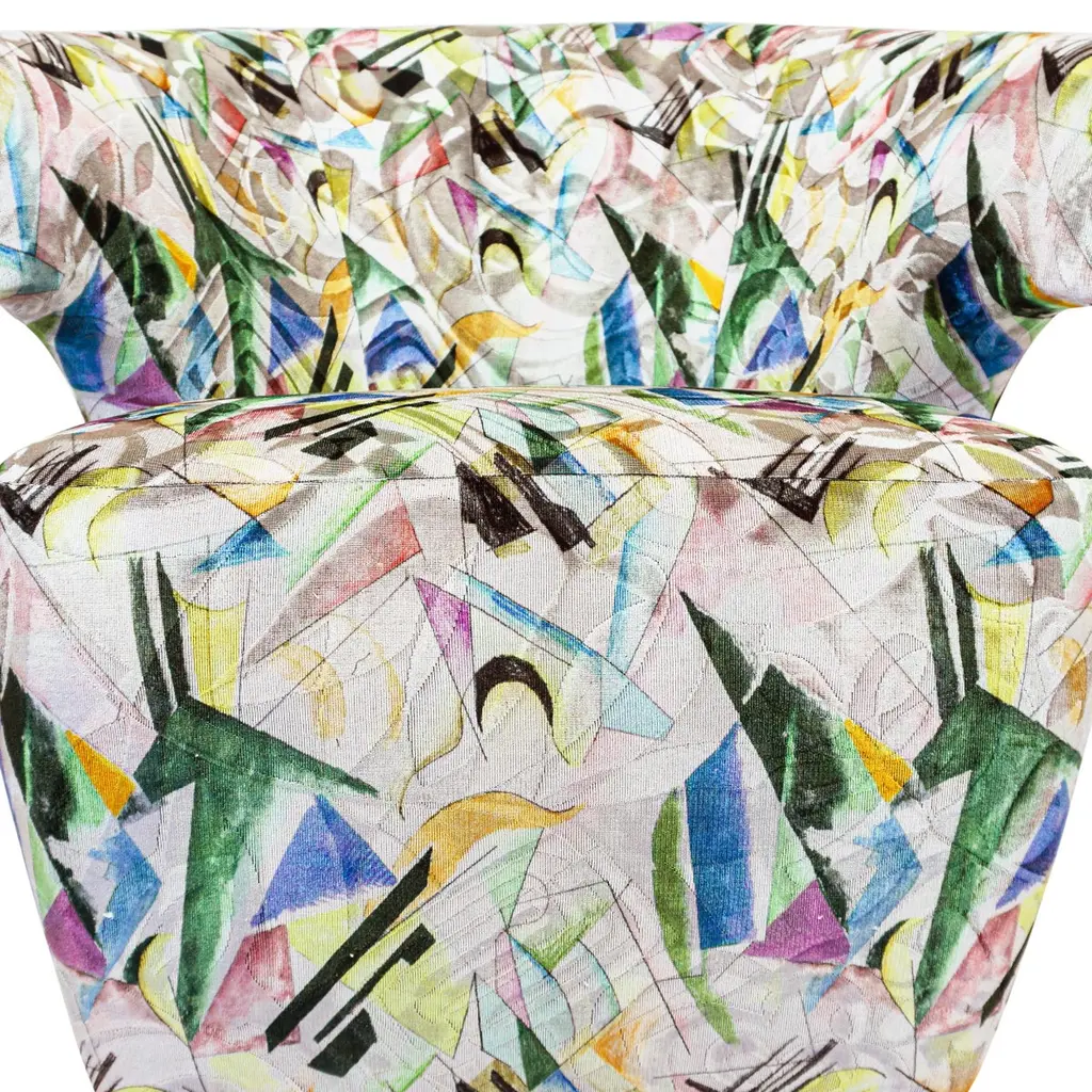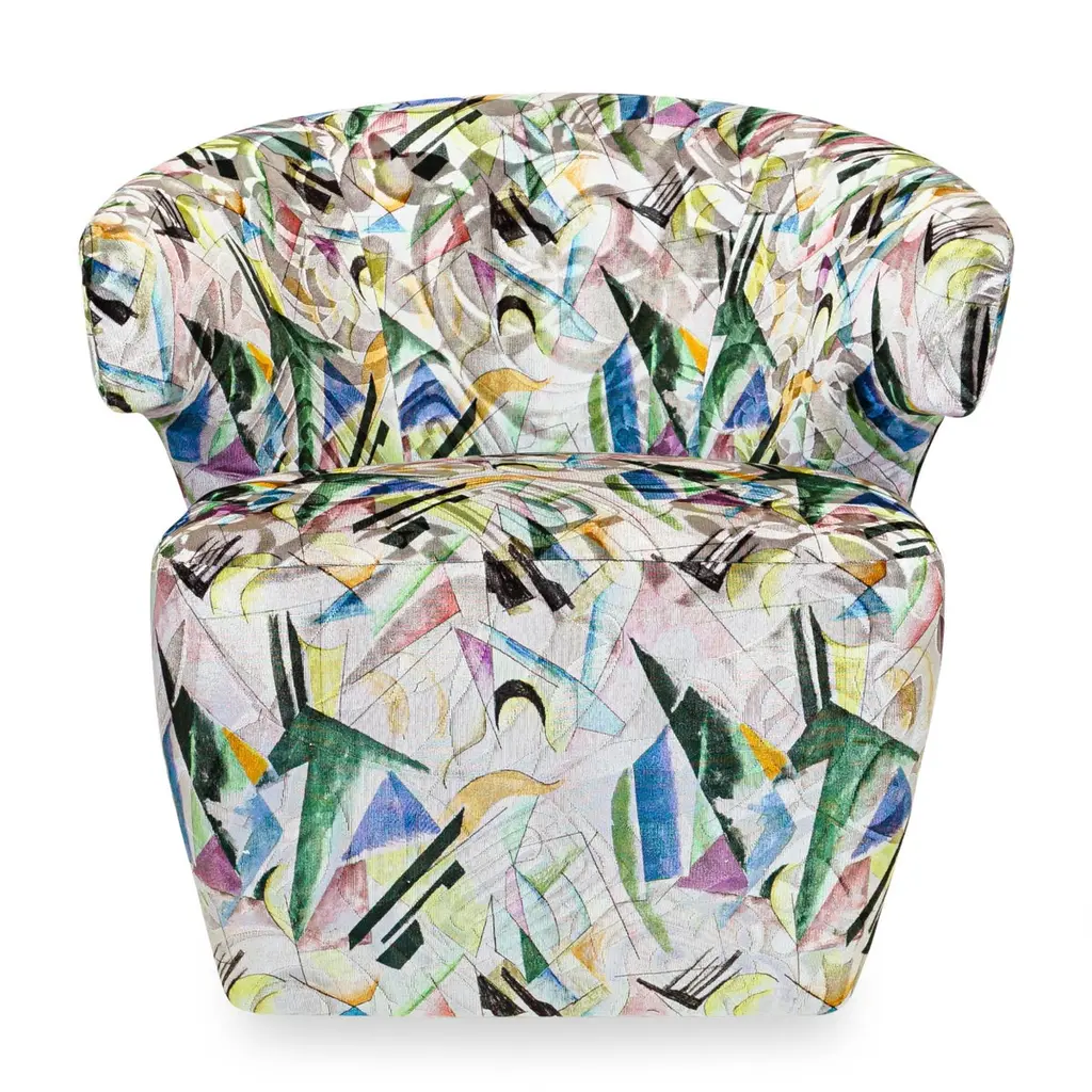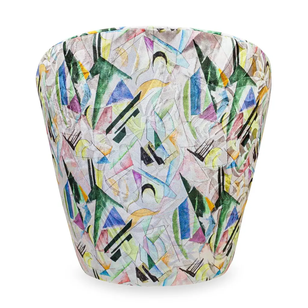 Featuring a popping bauhaus inspired cut and printed velvet, this winged swivel chair has a small stature but can comfortably seat taller and larger adults. The seat is firm and supportive and the slope of the back is "just right". The swivel is 360 degrees. Send your own fabric or ask about our library of over 10,000 samples.Measurements:Overall: 31.5”W x 22”D x 30”HInside: 23”W x 17.5”D x 17.5”HSeat height: 17"Price as shown: $5,600 eachCOM price: $2,400 eachCustomization may change price.How We Work:Made to order by Connecticut-based furniture design and manufacturing company The Tailored Home. Submit your customization desires by 1stdibs messenger for a quote. After orders are placed our workshop manager creates a visual work order for your approval for quality assurance.Customization Options:Dimensions can be customized. Ask for details.The fabric shown may come in more colors. We also carry thousands of other materials and can send you samples and fabric pricing upon request. We accept your fabric for a COM fee of 5% of the cost of the piece. Welting, piping, tape or trim can be added. Different species available for pieces with exposed wood and can be painted & lacquered in any Benjamin Moore color (for additional charge) or stained in one of our stain options. Custom color matches cost $75 per sample.We accept inspiration photos of pieces you like.2021 - Made to OrderThis piece can be made as is or custom made with customer’s choice of materials and size adjustments.9-10 Weeks.