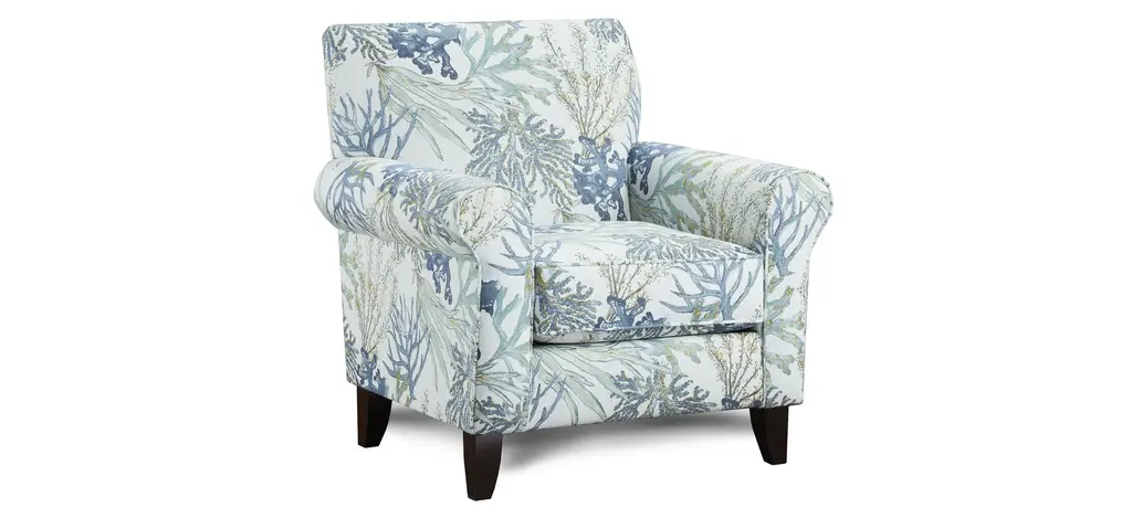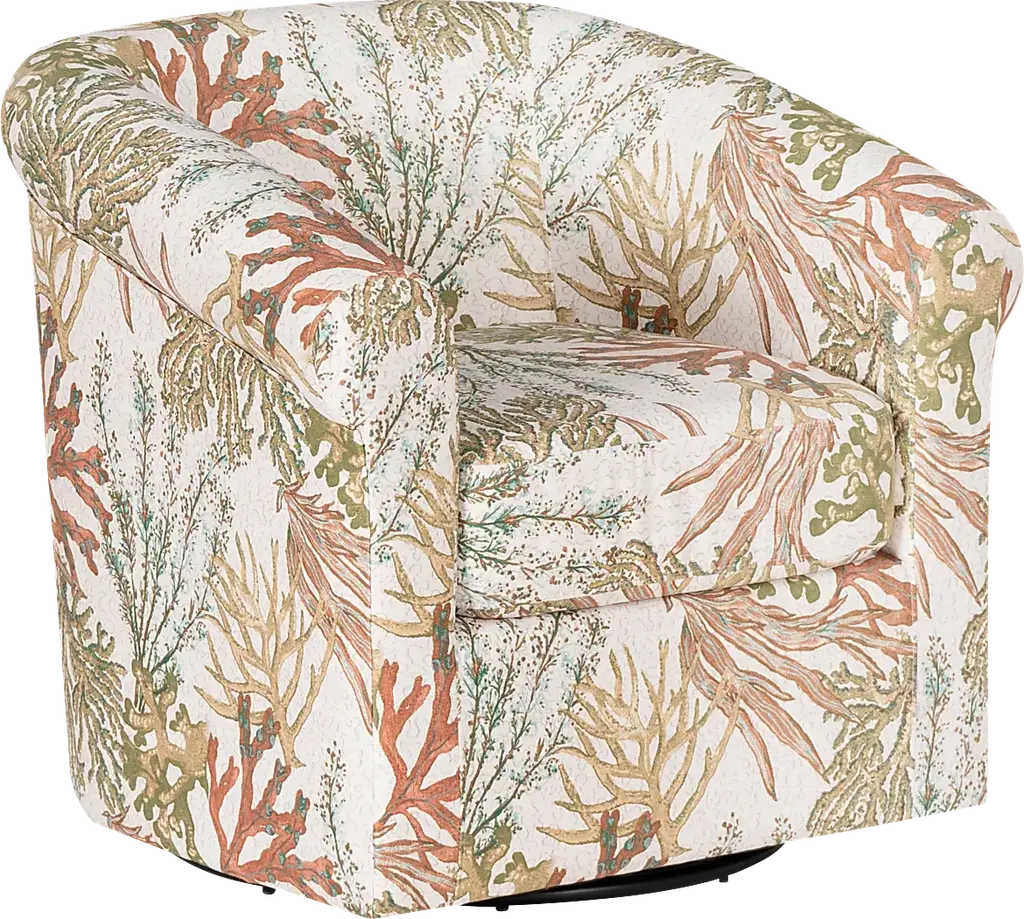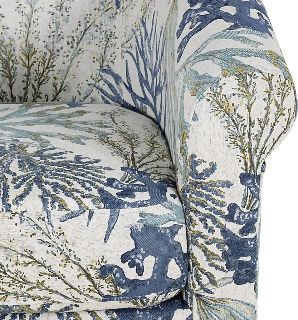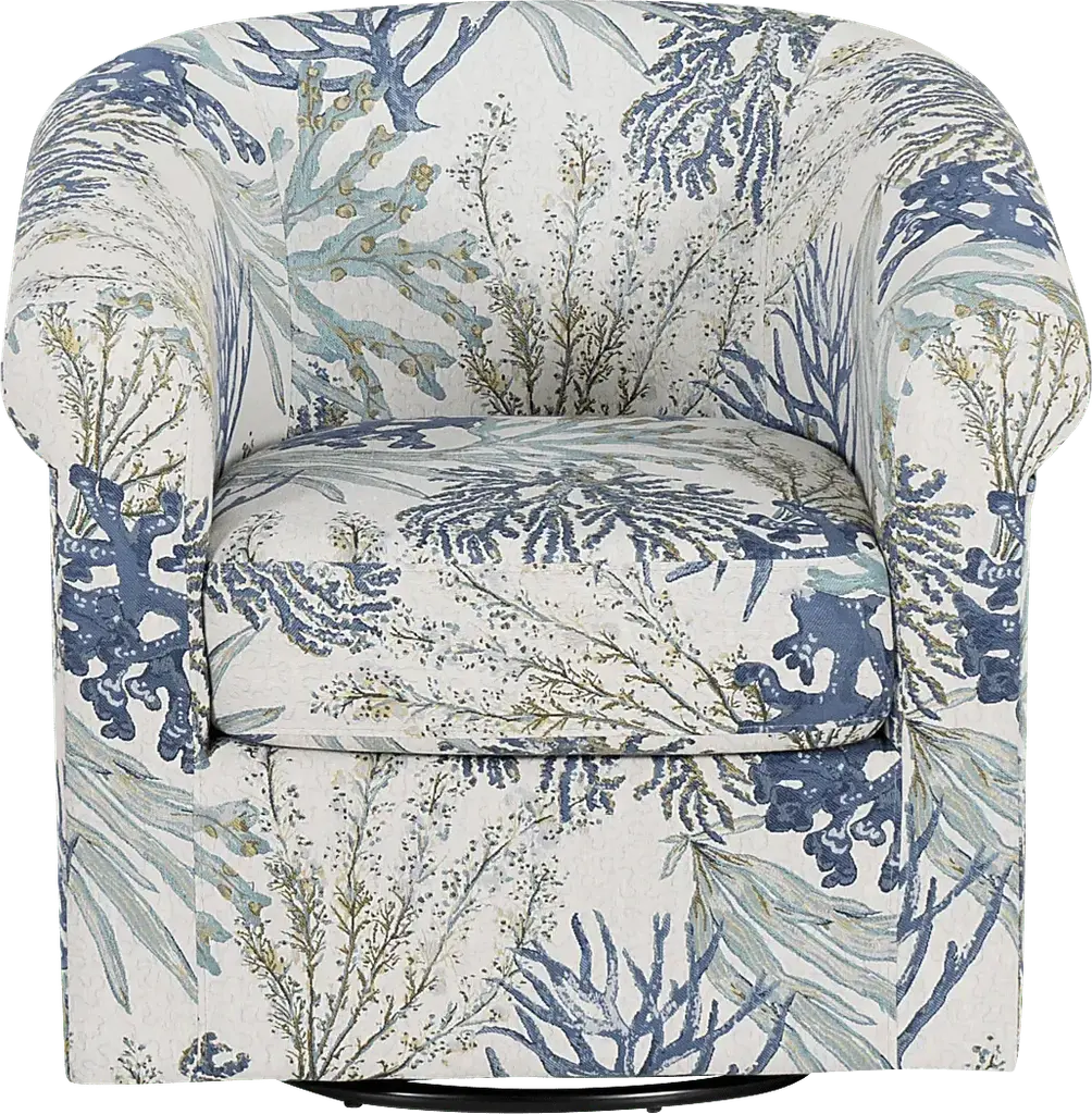 For the days you can't make it to the beach but could still use a bit of nautical charm, the Witgate chair got you covered. An engaging pattern of coral in shades of ocean blue create a welcoming coastal aesthetic that pops amongst neutral decor. The arched back, roll arms, and generously padded seat are supported by a sturdy wooden frame that swivels 360 degrees for maximum convenience. This piece arrives fully assembled, ready to make waves in your living room, sunroom, bedroom, or beach house.