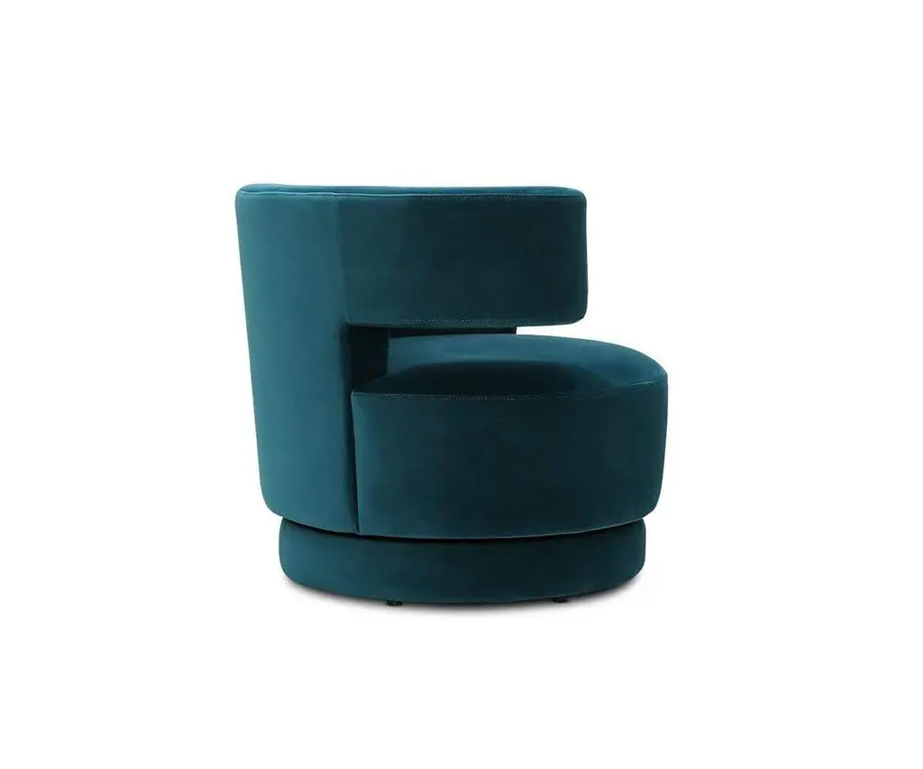 The Wynne Swivel Chair brings welcome visual drama to any room. The unique shape is made with comfort and contemporary style in mind. Vividly colored upholstery accentuates the piece's structural curves.