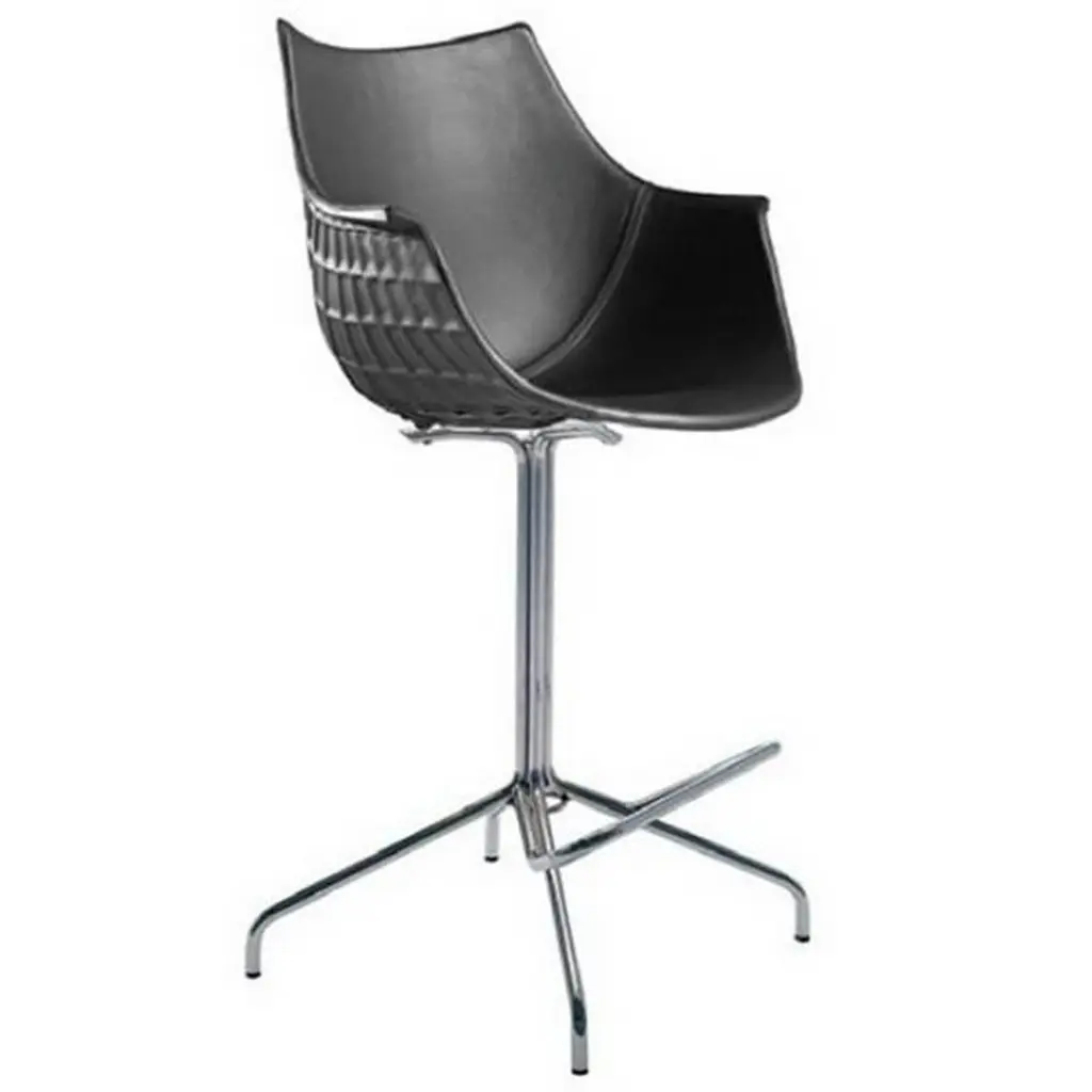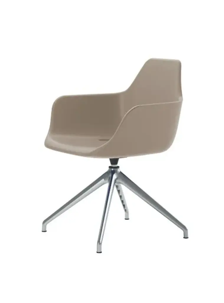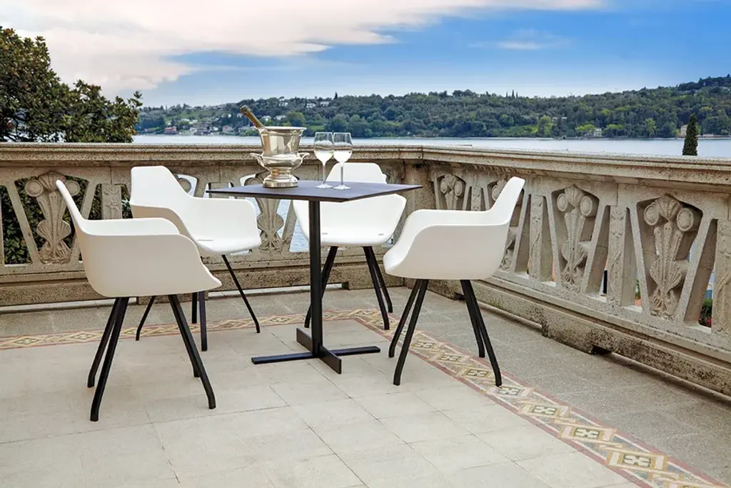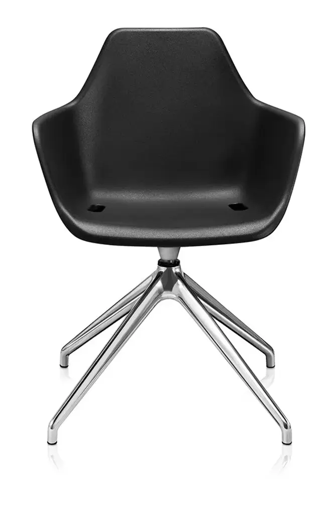Y Work is a trestle-based swivel polyethylene chair.Y, the armchair introduced in 2015, has soft and moderate lines. Its shape, modern and with vintage recalls, allows a great comfort and a wonderful versatility, that makes it perfect to fit both in public and private spaces. The armchair is available in the outdoor version, stackable, and in the indoor one, with completely upholstered shell or with only a cushion, in the Y Soft version. Y is presented with steel or wood frame, available with different declinations.
