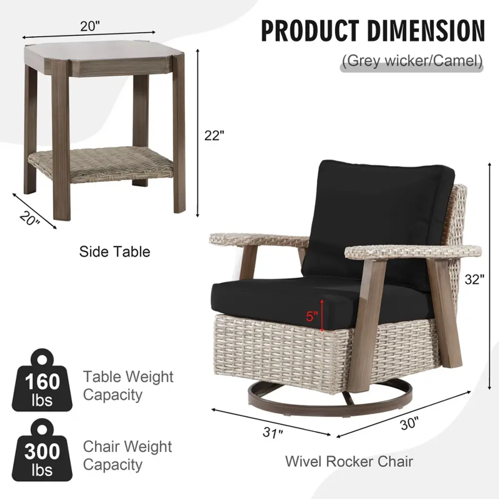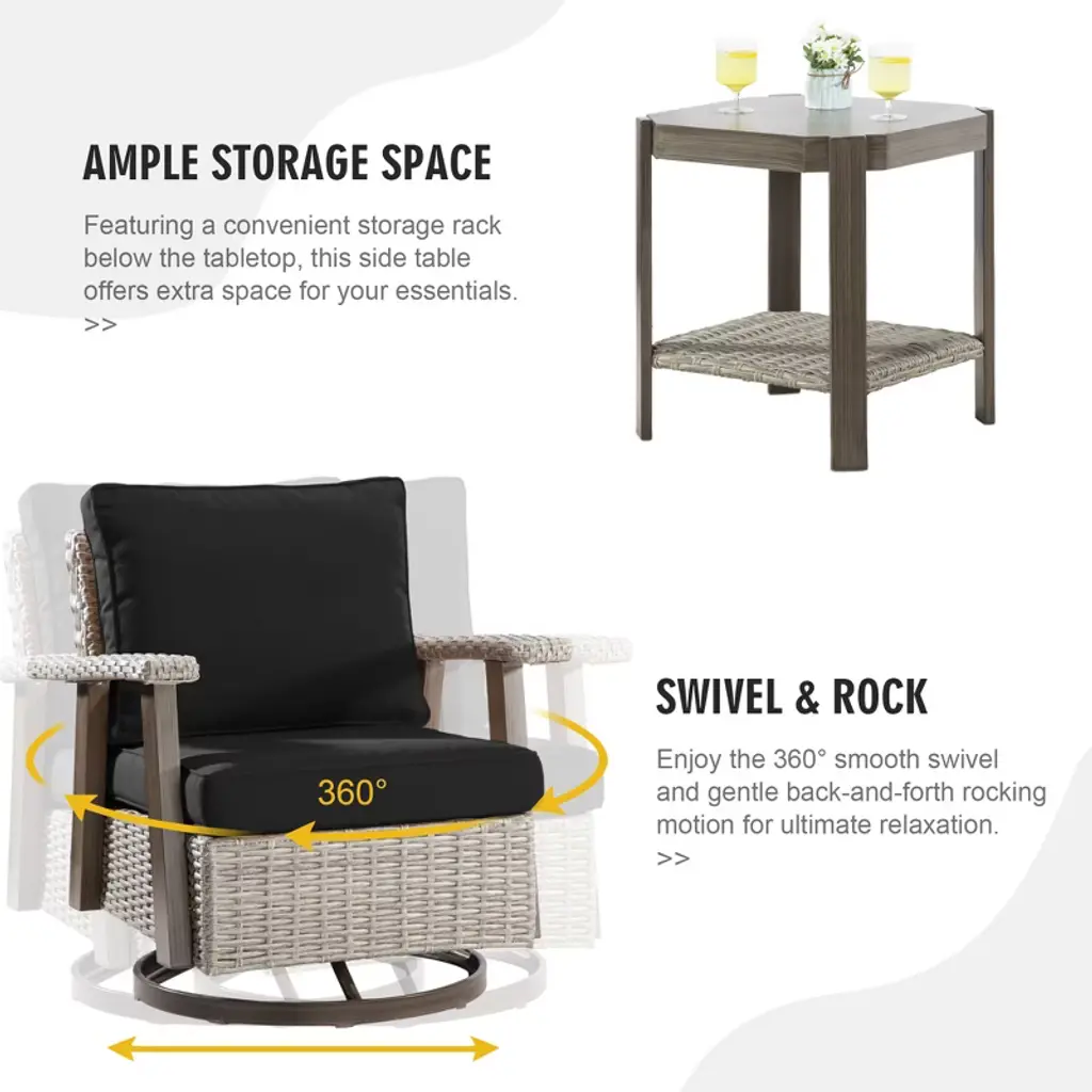 Yyardsight Patio Swivel Rocking Chair With Cushions & Storage Side Table - Outdoor Wicker Lounge Set For Porch Or Backyard