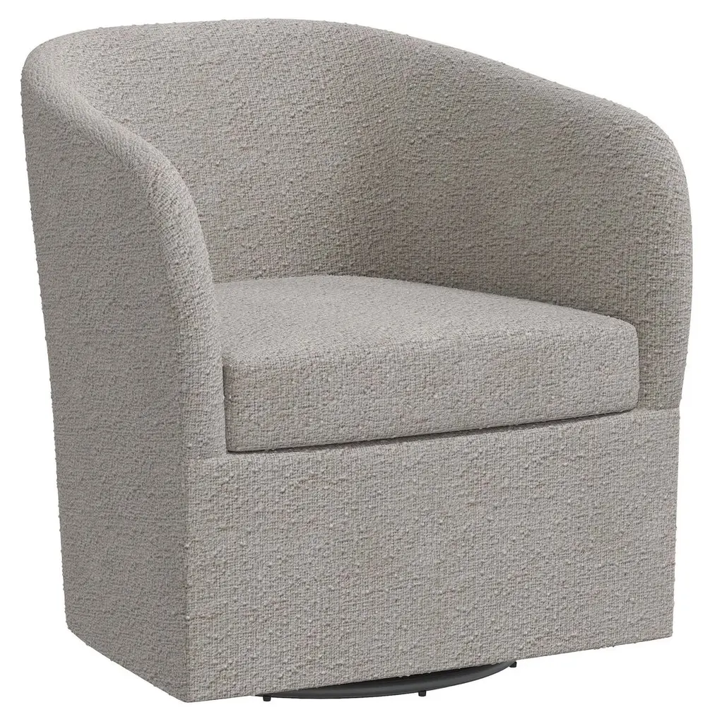 Made in the USA, this barrel chair swivels a full 360 degree. Thanks to its generous cushioning, it's as comfortable as it is chic.