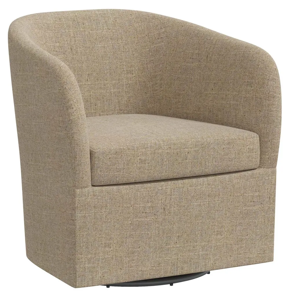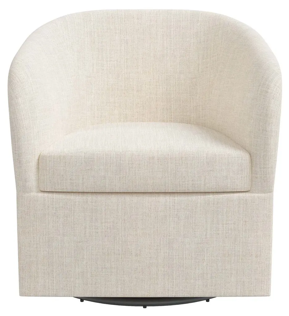 Made in the USA, this barrel chair swivels a full 360 degree. Thanks to its generous cushioning, it's as comfortable as it is chic.