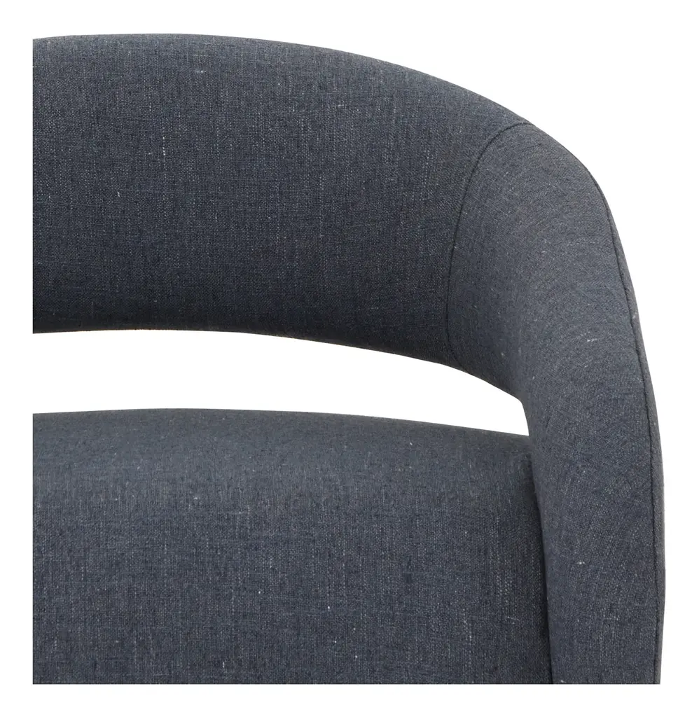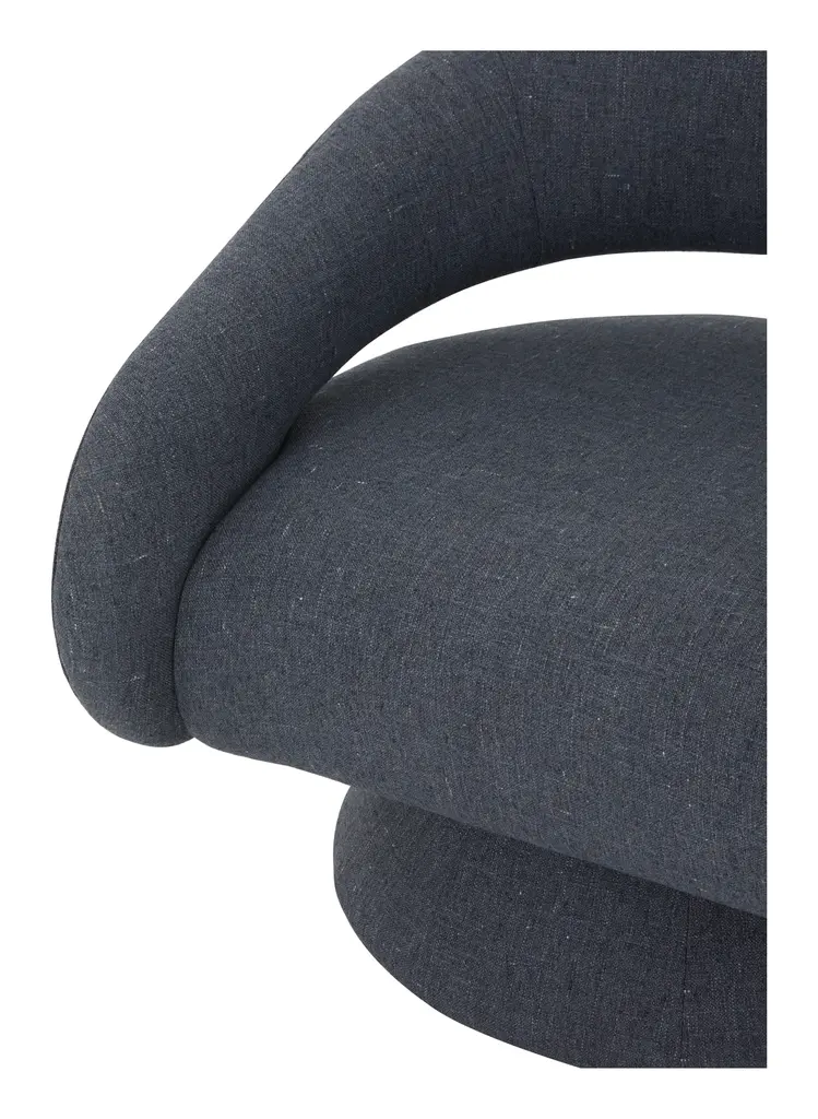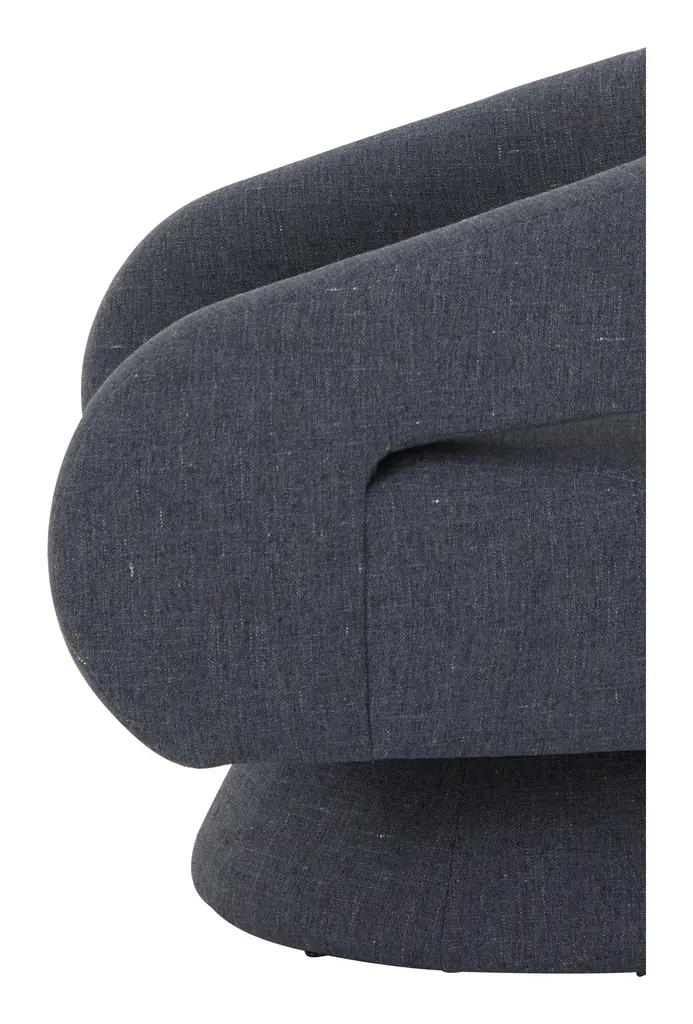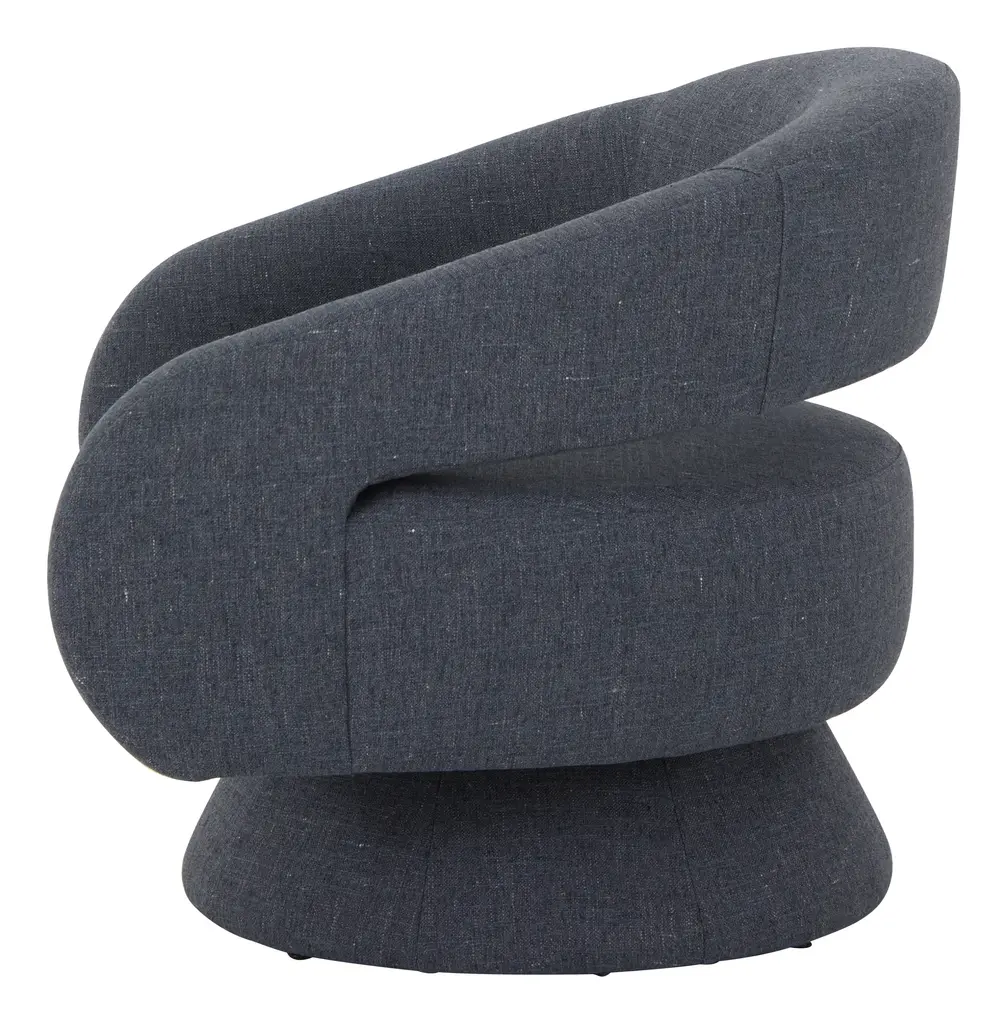 Put a modern spin on your home with our retro-inspired Ziggy Swivel Chair. This fully-upholstered lounge chair channels major mid-century vibes with its low profile, curvy lines, sleek pedestal base and open cut-out back. Along with these good looks, Ziggy’s rounded shape, sheltering sloped arms, low-lying back rest and deep, comfortably firm seat cushion also make for an enveloping, upright sit. And how could we forget that 180-degree swivel base? It allows you to rotate Ziggy from side to side with control and style for a more versatile use of space. The perfect addition to your modern living room, especially as a matching pair. •upholstered in guilde eclipse woven•fabric content: 45% rayon, 42% polyester, 13% linen•180 swivel base•sustainable construction •custom options available •made in the USA Dimensions•31"W x 31"D x 29.5"H•arm height: 21"•seat width: 23" •seat depth: 22.75"•seat height: 17.5"