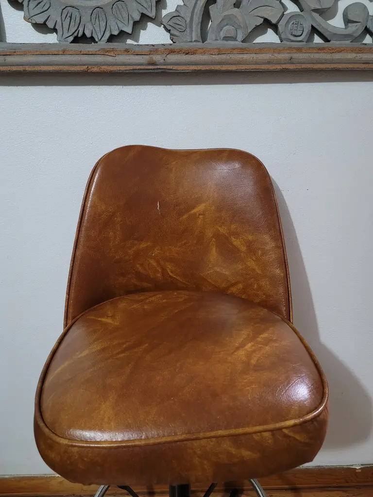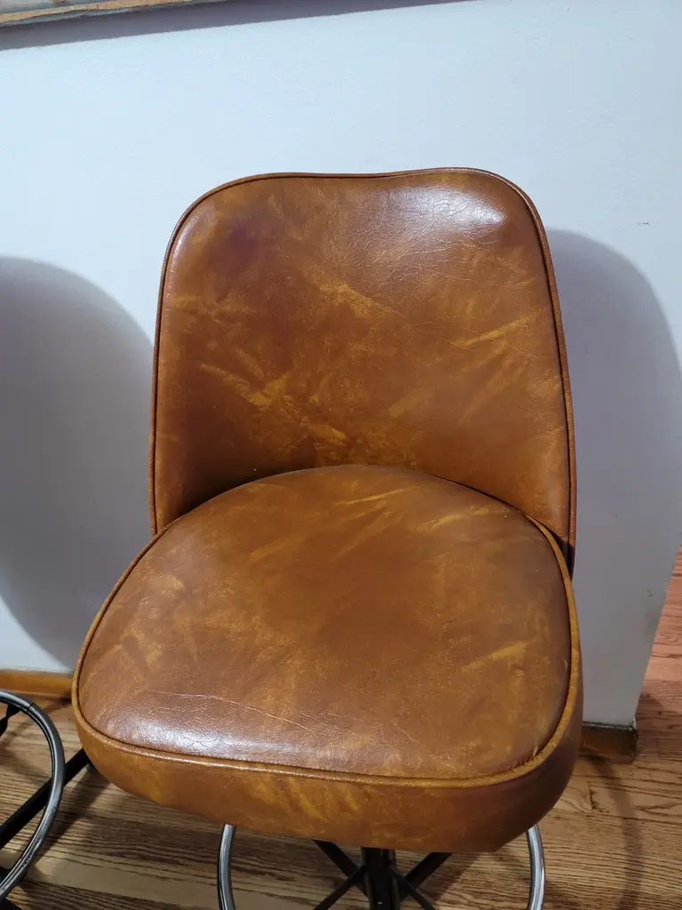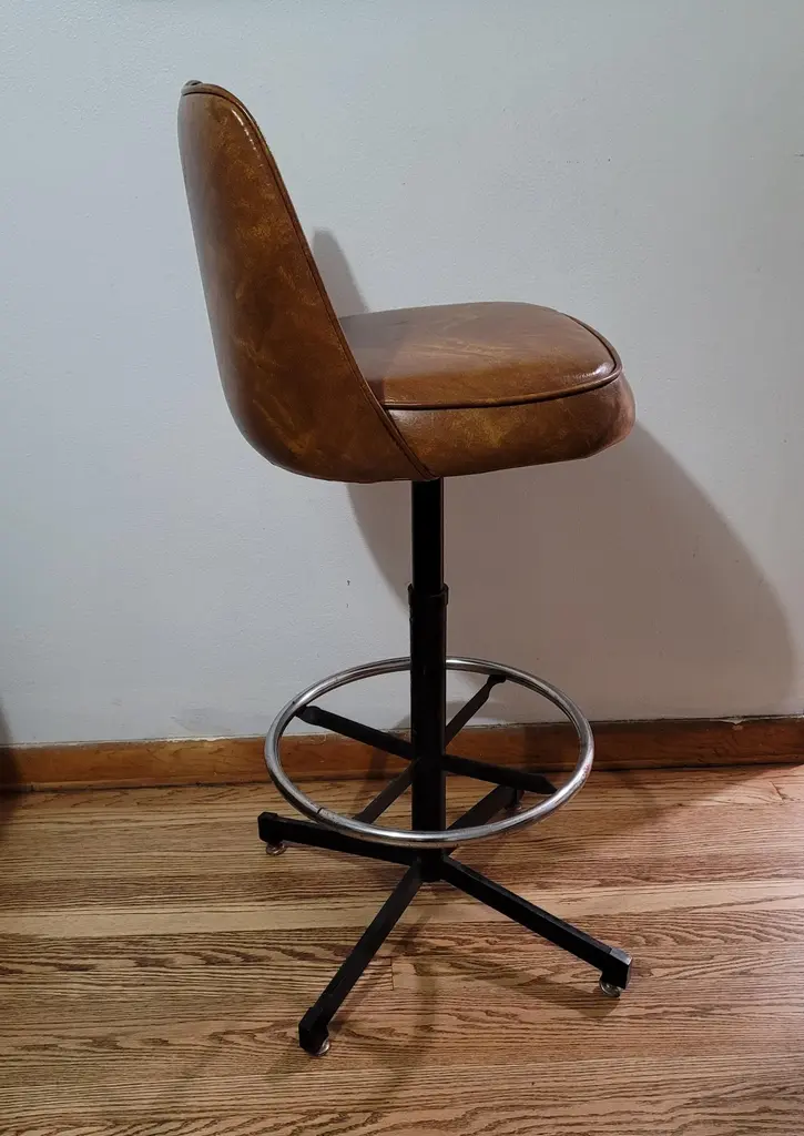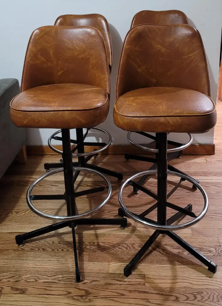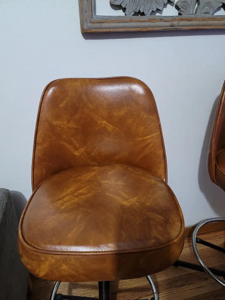 Add a touch of mid-century modernism to your space with these vintage swivel stools from Admiral Chrome Corporation. Crafted with a vinyl, metal, and fabric material blend, these brown bar stools are perfect for anyone looking for a unique piece of furniture. The stools come in a part-assembled condition for easy assembly and have a height of 41 inches, a length of 19 inches, and a width of 18 inches. Featuring a swivel design, these stools are perfect for antique lovers who want a comfortable seating option. The stools also come in a stylish brown color that is sure to blend well with your interior decor. Don't miss out on this opportunity to add a touch of vintage charm to your home or office space.