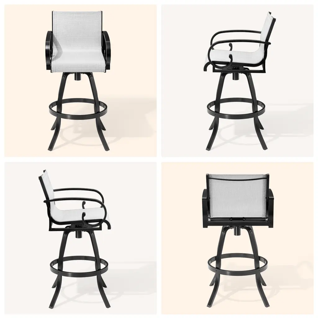 2/4 Pcs Outdoor Swivel Bar Stools Aluminum Sunbrella Textilene Sling Patio Barstools - Augustine Oyster - Set Of 2