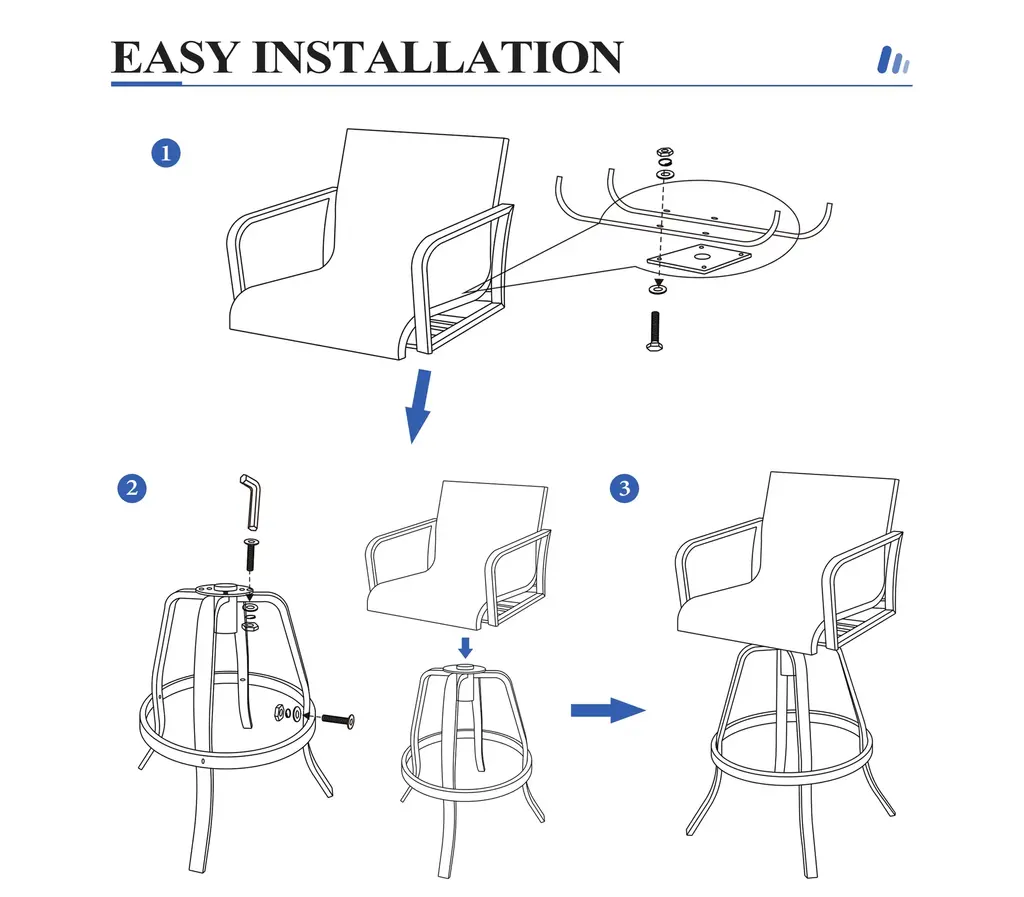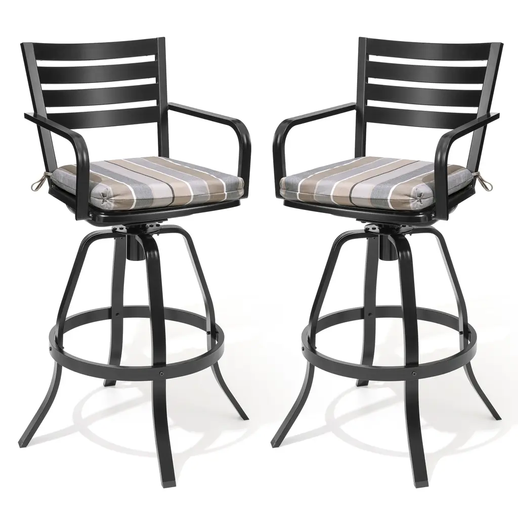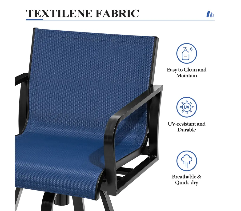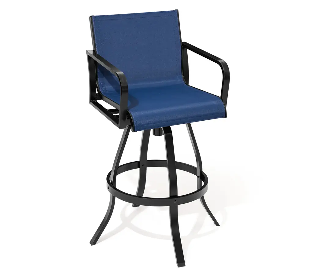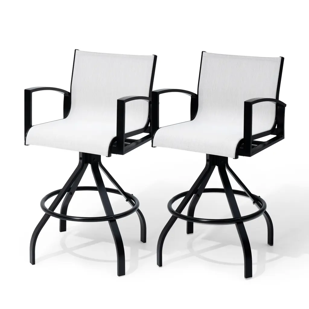 ✔【Product size】: Overall dimension: 18.31 " L x 18.31 " W x 43.31 " H. Seat size: 18.31 " L x 15.75 " W. Backrest size: 18.31 " L x 14.17 " W. Seat height: 29.72 " H. Armrest height: 37.41 " H.✔【 Comfortable design】: The armest and backrest design of the bar stools are curved and designed to be ergonomic. The patio bar stools sets make you feel soft, comfortable, relaxing.✔【High-grade material】: The patio swivel bar stools are made of breathable textilene fabric and sturdy powder-coated cast aluminum frame. The fabric is durable and ventilated, easy to clean. Thanks to cast aluminum frame, each patio bar stool weight capacity holds up to 300 lbs.✔【360 Degree swivel】: Swivel bar stools make the chair 360 degree rotatable. The swivel stools make you talk with others easily or enjoy your leisure time. Moreover, footrest provides extra comfort.✔【Fit various occasions】: The patio bar stools can be used in patio,indoor, outdoor garden, bar,park, porch, poolside and yard but also suitable for indoor, kitchen, living room.
