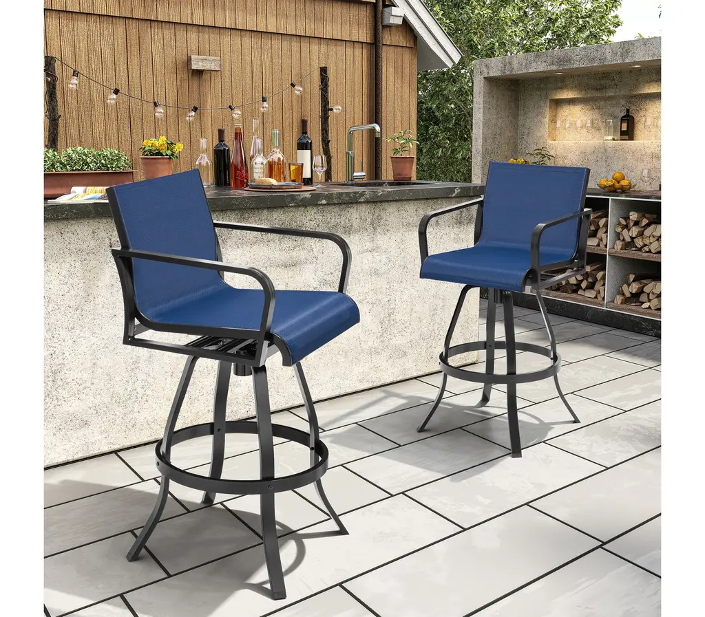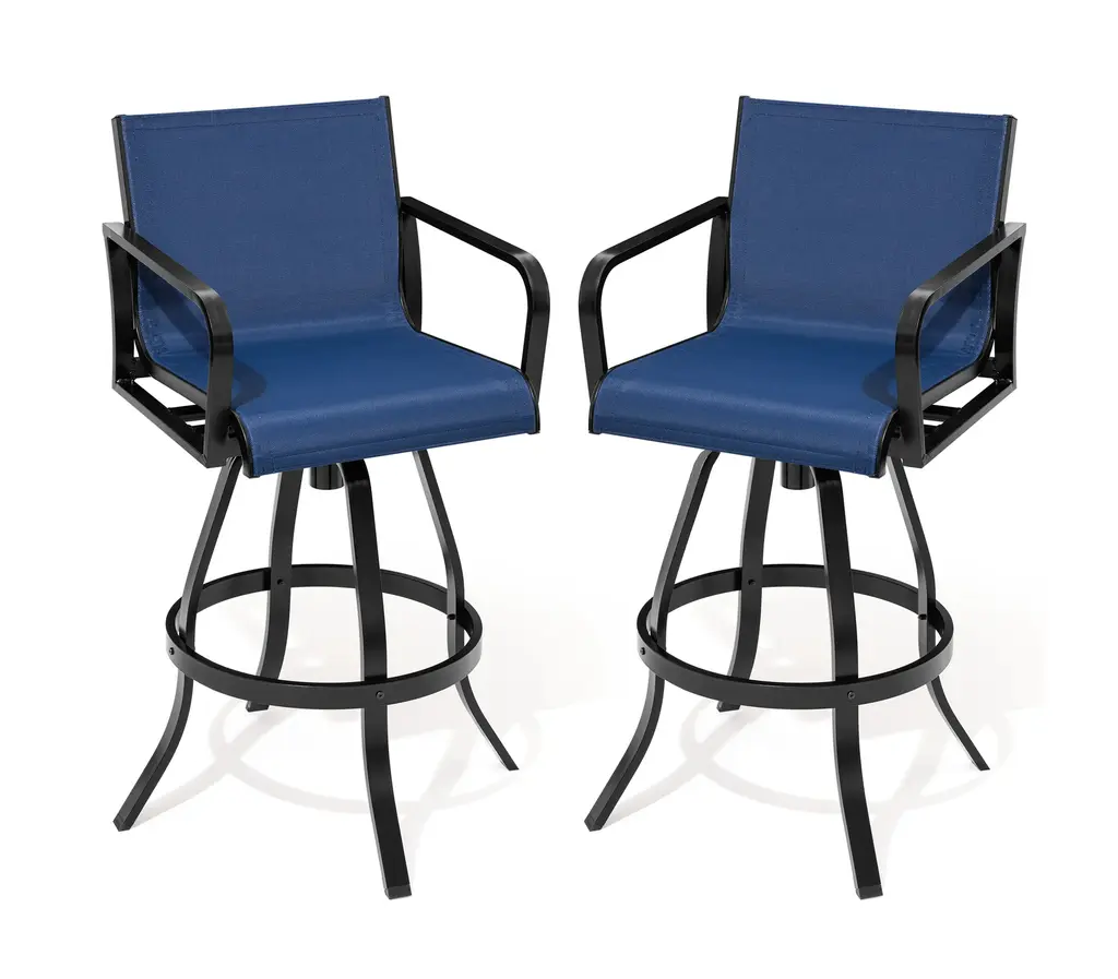 2Pcs Patio Bar Stools Set Outdoor Cast Aluminum Bar Height Swivel Stools, Blue