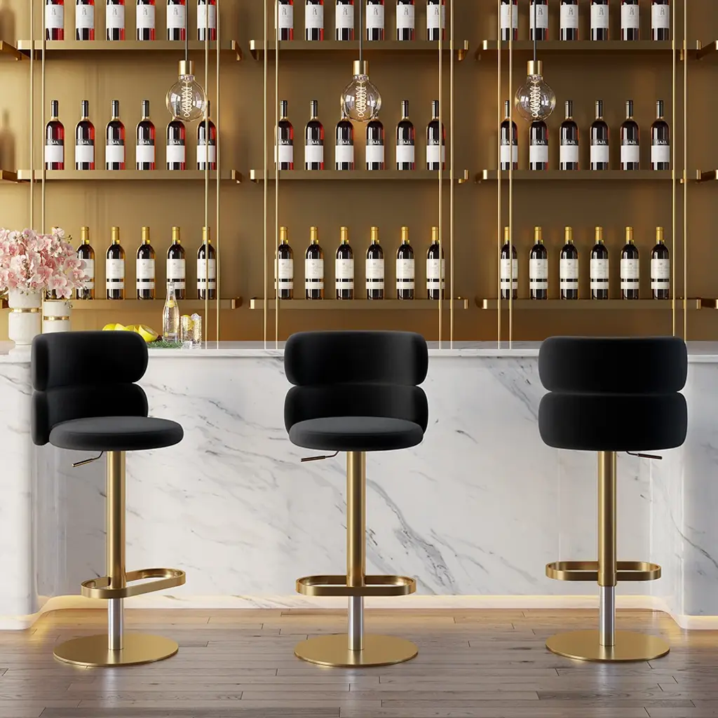 Affordable Luxury Modern Adjustable Swivel Bar Stools With Velvet Upholstery Black