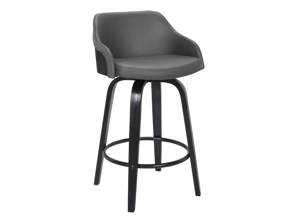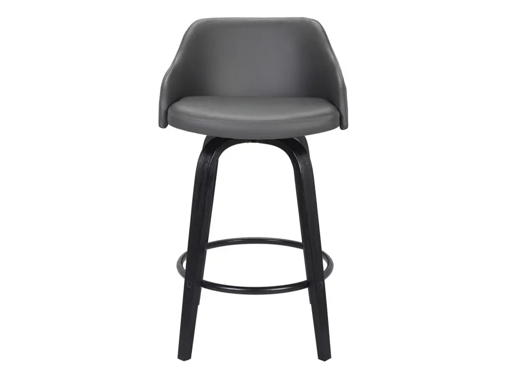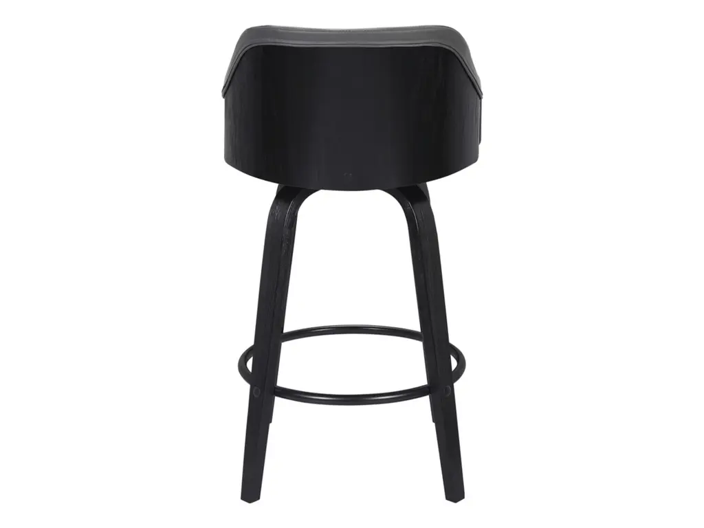 With a brushed black finish and faux leather upholstery, the Alec swivel bar stool has a modern design and neutral tones that easily blend into just about any room decor. The sleek contemporary-style bar stool features a foam-padded low back design for lumbar support, along with a built-in metal footrest. Its 360-degree swivel action allows for maximum mobility while seated.