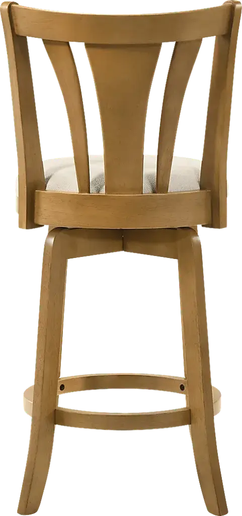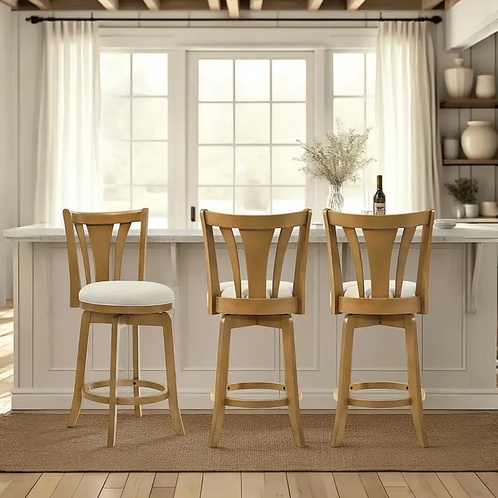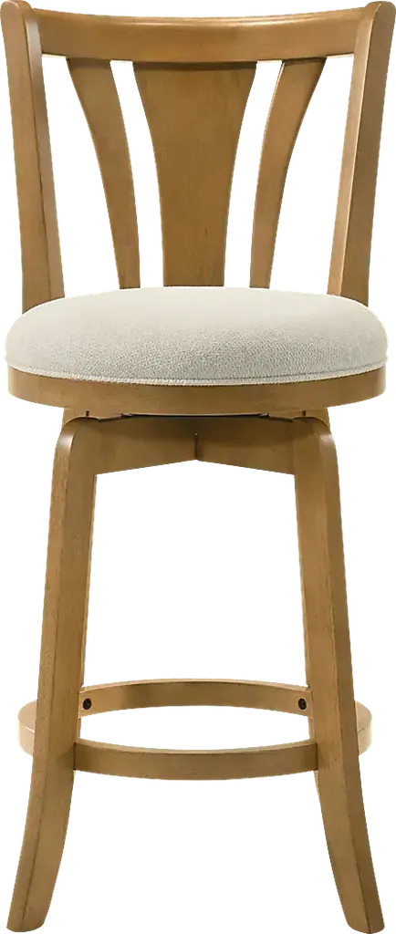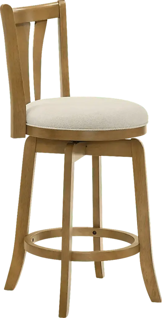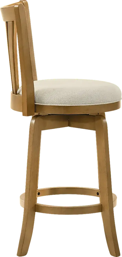 Refined yet inviting, the Arcanen I light brown barstool is a stylish companion for your kitchen or home bar. These stools feature plush, rounded cushions, perfect for complementing their wood finishes. Built from solid rubberwood, the Arcanen offer durability with a graceful design that suits both classic and modern interiors. The finishes are expertly applied for a smooth, polished look that enhances the natural beauty of the wood. The smooth 360-degree swivel feature offers effortless mobility, ideal for entertaining or everyday use. Each stool includes a footrest for added comfort and comes ready to enjoy. The armless silhouette offers flexibility and ease of movement. Customer assembly is required.