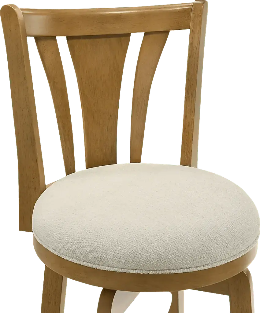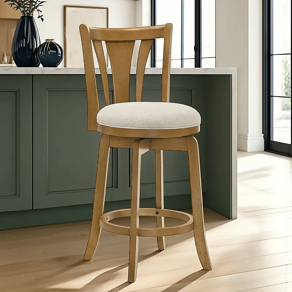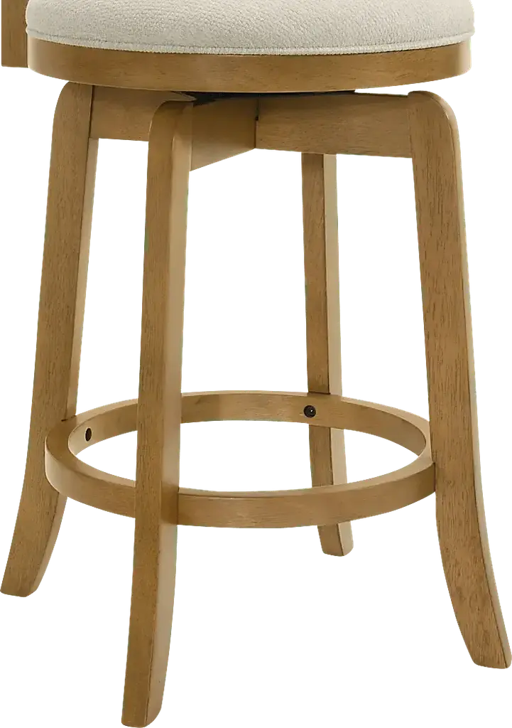 Refined yet inviting, the Arcanen I light brown counter height stool is a stylish companion for your kitchen or home bar. These stools feature plush, rounded cushions, perfect for complementing their wood finishes. Built from solid rubberwood, the Arcanen offer durability with a graceful design that suits both classic and modern interiors. The finishes are expertly applied for a smooth, polished look that enhances the natural beauty of the wood. The smooth 360-degree swivel feature offers effortless mobility, ideal for entertaining or everyday use. Each stool includes a footrest for added comfort and comes ready to enjoy. The armless silhouette offers flexibility and ease of movement. Customer assembly is required.