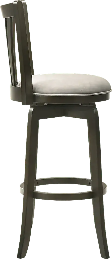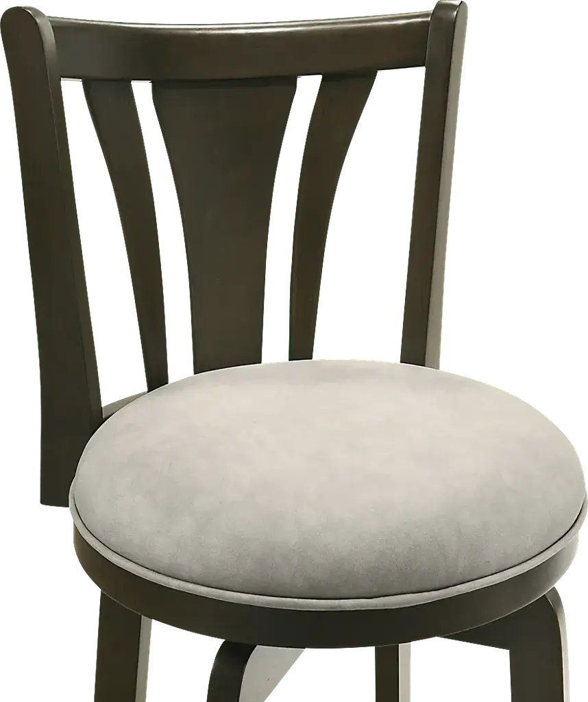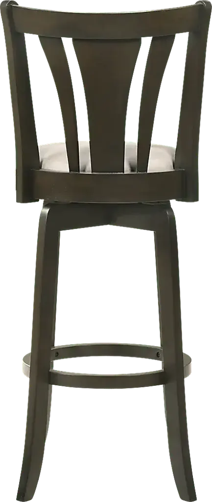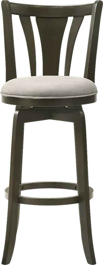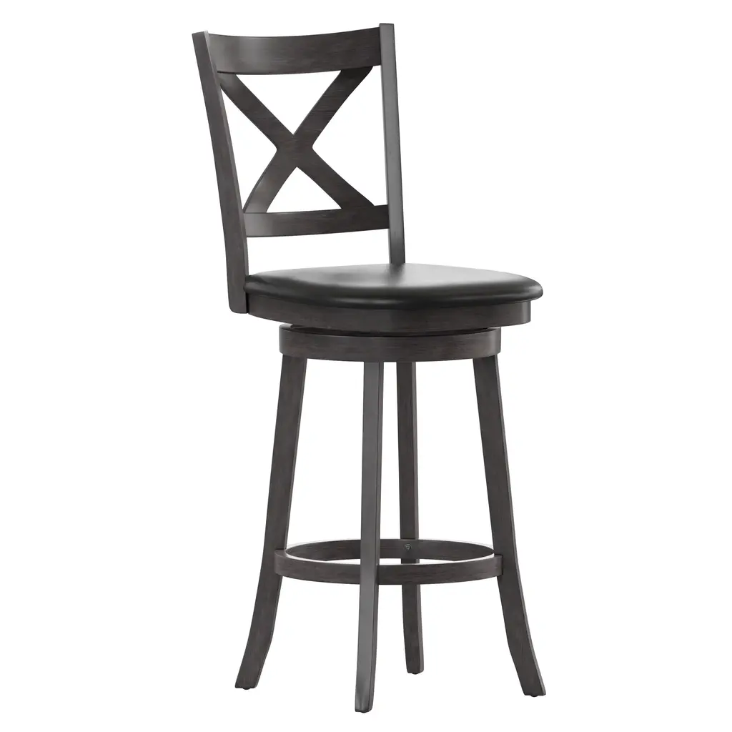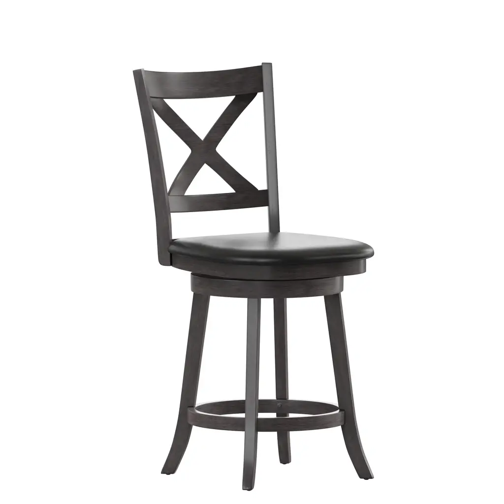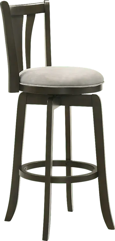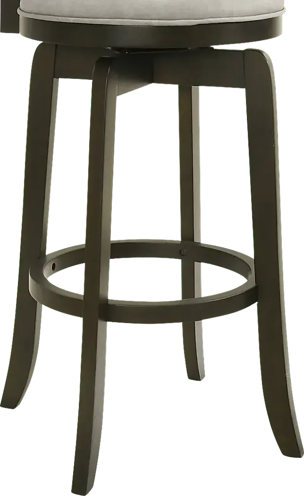 Refined yet inviting, the Arcanen II dark gray counter height stool is a stylish companion for your kitchen or home bar. These stools feature plush, rounded cushions, perfect for complementing their wood finishes. Built from solid rubberwood, the Arcanen offer durability with a graceful design that suits both classic and modern interiors. The finishes are expertly applied for a smooth, polished look that enhances the natural beauty of the wood. The smooth 360-degree swivel feature offers effortless mobility, ideal for entertaining or everyday use. Each stool includes a footrest for added comfort and comes ready to enjoy. The armless silhouette offers flexibility and ease of movement. Customer assembly is required.