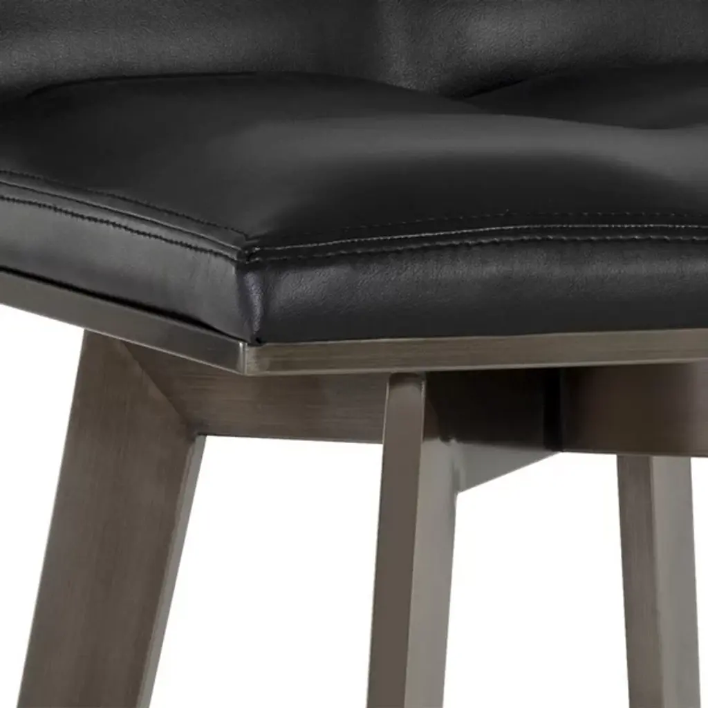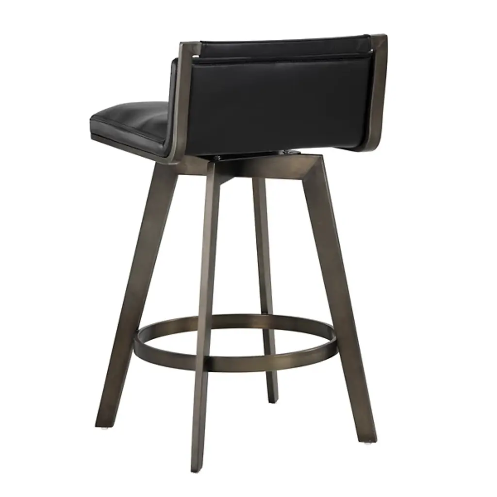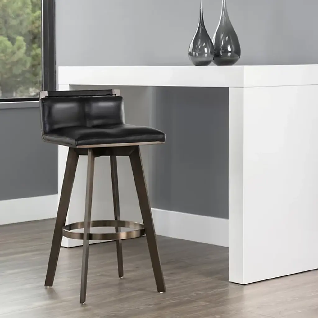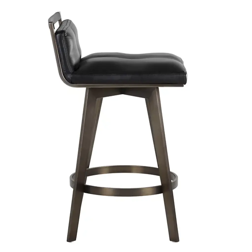 Presented by Sunpan, the Arizona Swivel Counter/Bar Stool showcases an Art Deco influence with a low-profile seatback that features squared-off shaping, combining modern and vintage aesthetics. The stool offers a 360-degree swivel with a 180-degree return, allowing for effortless mobility and convenience. A matching faux leather trim accentuates the top portion of the seatback, adding a sophisticated detail. The seat itself boasts a gently curving shape and comfortable padding, covered in crafted faux leather.