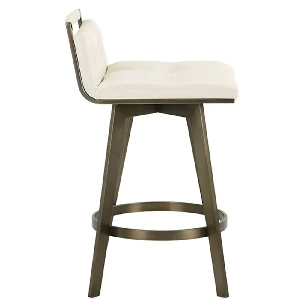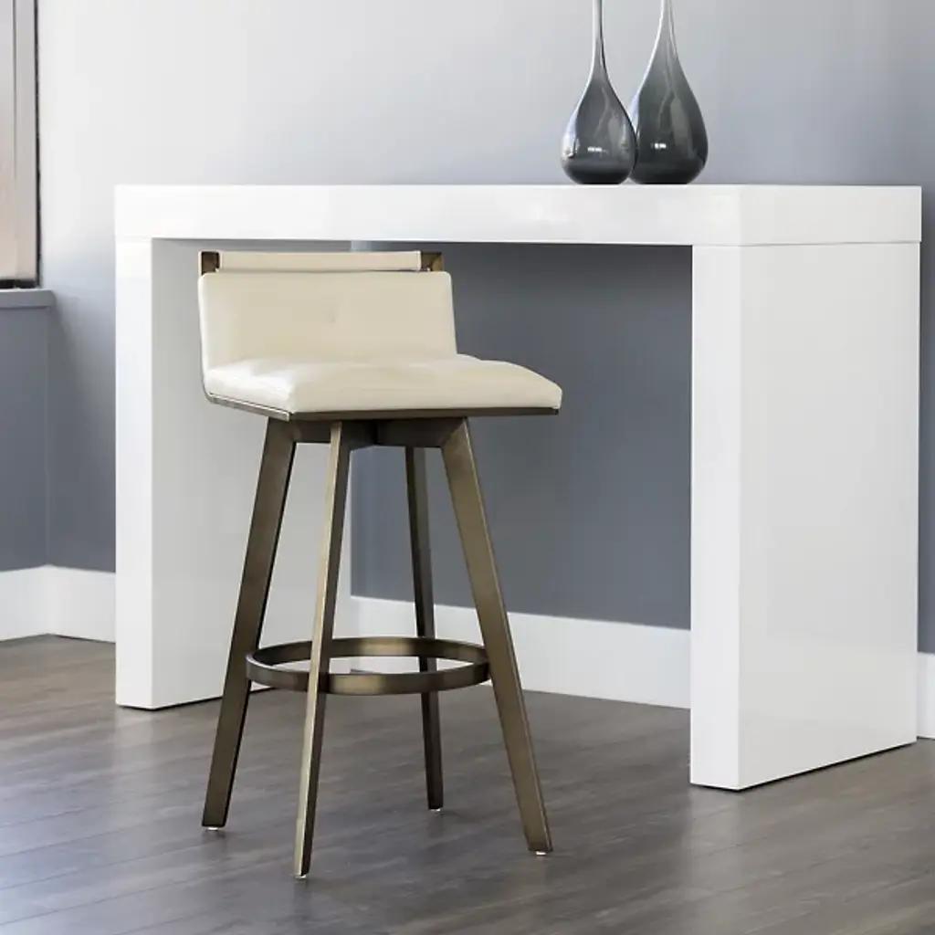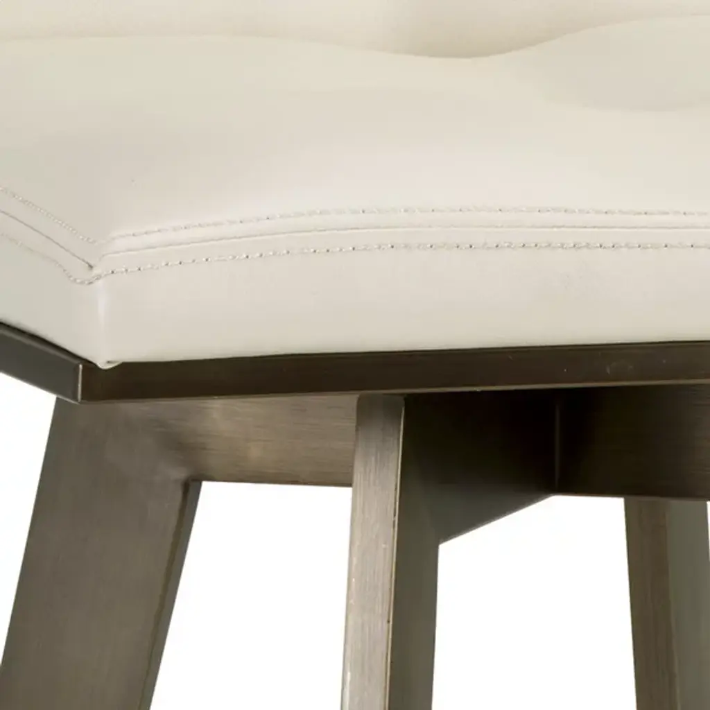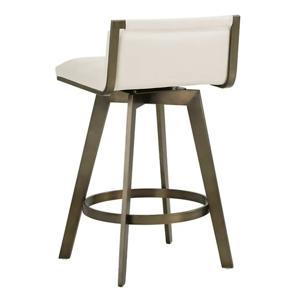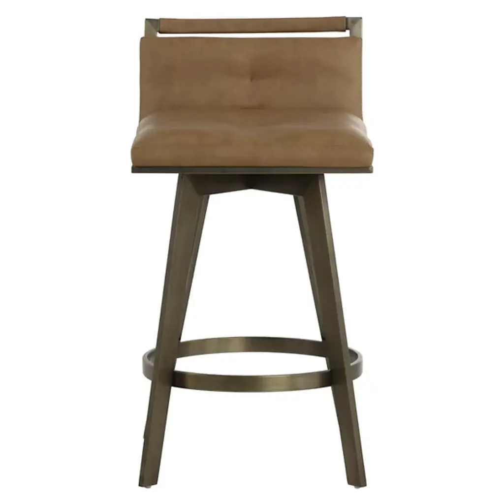 Presented by Sunpan, the Arizona Swivel Counter/Bar Stool showcases an Art Deco influence with a low-profile seatback that features squared-off shaping, combining modern and vintage aesthetics. The stool offers a 360-degree swivel with a 180-degree return, allowing for effortless mobility and convenience. A matching faux leather trim accentuates the top portion of the seatback, adding a sophisticated detail. The seat itself boasts a gently curving shape and comfortable padding, covered in crafted faux leather.