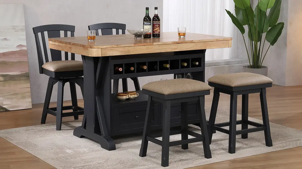 Autumn Winds Swivel Barstool - Set of 2 has fan back swivel bar stool with beige vinyl seating that goes very well with Autumn Winds pub table.