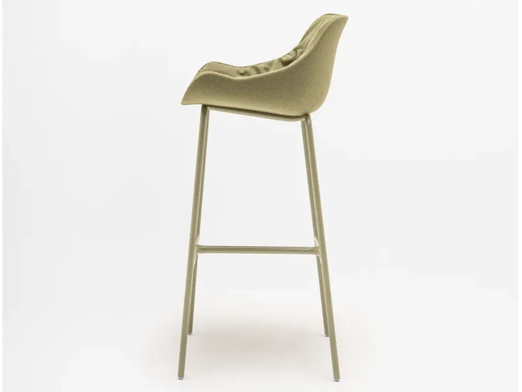 Baltic Soft Duo with the draped cushion has been elevated with a high base. It is a hybrid between a high stool and a comfortable armchair. Sleek lines of the base are combined with the upholstered seat, so the whole stool looks elegant and at the same time cozy. A wide range of upholstery materials allows for matching the colours of the fabrics and the base, thus for adjusting the stool to the interior. As a result, the Baltic Soft Duo stool will be great for spaces of various styles and functions: from home kitchens, office canteens and lounge zones up to restaurants and bars.Baltic family by Krystian Kowalski is a versatile set of shell chairs revolving around the idea of providing a superb user experience.The name Baltic has been utilized to highlight the European origin of everything affiliated with the project. Being abundant with different types of seat forms and bases, the family guarantees a full spectrum of applications – from soft work and conference purposes to lounge and dining use. The utter attention to detail and technologically advanced structure expands the possibilities simultaneously creating an opportunity of implementing the Baltic shell chair in various interior styles of both residential and commercial segments.The family of Baltic shell chairs is a continuous project of development and meeting the user expectations. The rigorous supervisory aims to assure the longevity of the furniture.The diversity of seats and bases allows for bestowing different roles upon each variant of the collection. The specificity of the configuration suggests the intended use but never forces it, as the flexibility of the range does not hinder the user to utilize it for something else.Depending on the needs as well as the aesthetic preferences, the users may select between a plain polypropylene or upholstered shell chair. Each represents a different design concept yet preserving the identity of an organic shell chair with smooth inviting lines. The polypropylene form is moulded using the injectors what enhances the accuracy allowing one to truly grasp the essence of the design in every manufactured piece. The draped cushion inlaid in the shell chair takes the user on a journey to the new realm of comfort. The soft material enveloping in its cosiness is upholstered in the finest quality textiles, parameters of which can be tailored to your requirements.A wide range of bases helps determine the main functions of the Baltic shell chair. By opting for the classic four-legged version, the chair becomes a truly multifunctional piece of furniture capable of handling practically any task. The solid wooden base is more of a traditional option that works exceptionally well in restaurants and canteens as a dining chair. Choosing the four-spoke base on castors grants users the much-needed mobility opening new possibilities in home office environments. Whereas the unconventional four-spoke base without castors balances on the verge of structural capabilities, making it a stunning swivel shell chair for conference rooms.