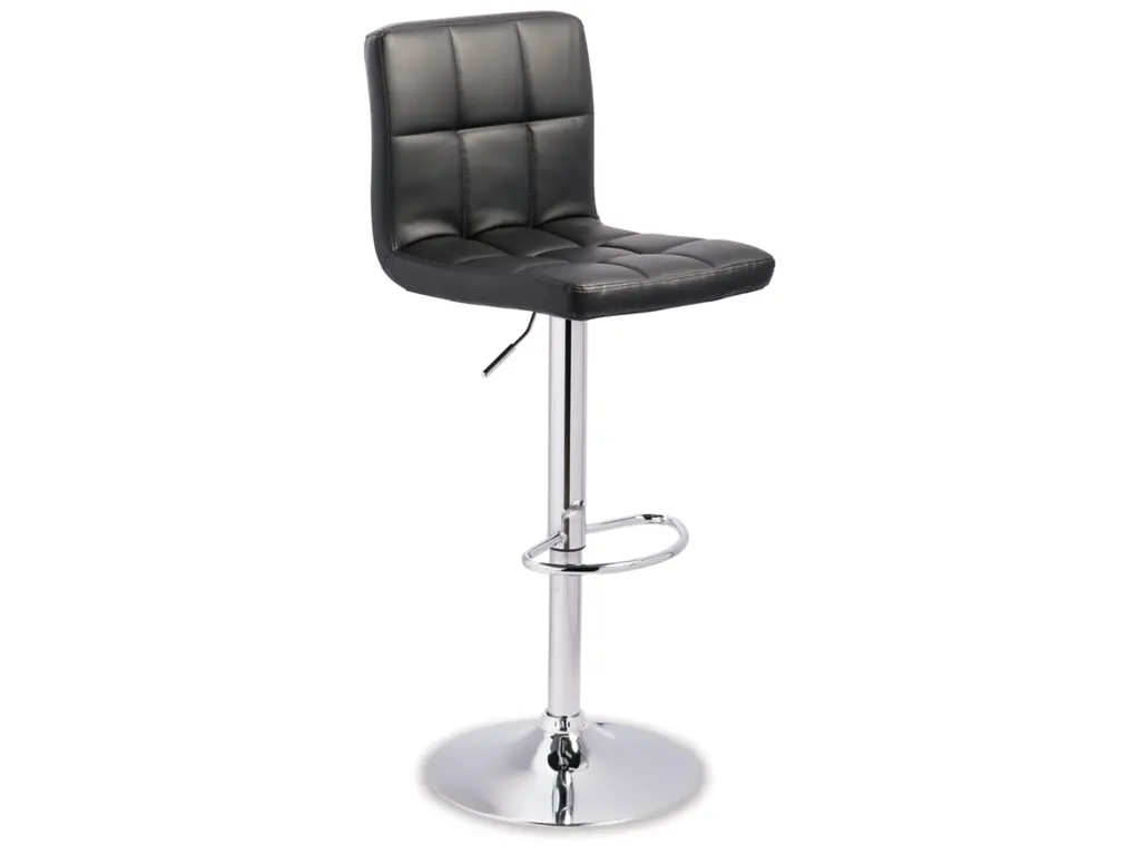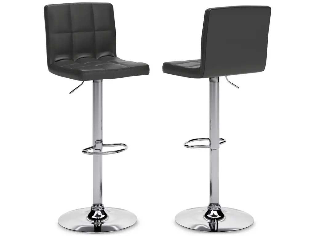 This upholstered swivel bar stool is ultra-contemporary style with a twist. Chrome-tone metal base is a sleek complement to the tailored cushioned seat with faux leather upholstery and squared tufting.