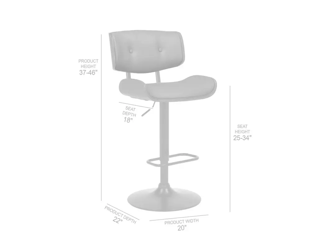 Add a touch of Mid-Century modern elegance to your home with the Brooklyn Adjustable Swivel Faux Leather and Wood Bar Stool. The Brooklyn features a plush high-density foam padded seat and back that are wrapped in a luxurious faux leather upholstery that will keep you and your guests comfortably seated for hours on end. The adjustable height functionality allows you to use this stool in your kitchen at your island or peninsula or at your home bar regardless of the surface height. Convenience doesn’t stop at the adjustable height feature; this stool also includes a full 360-degree swivel function that helps you stay engaged with your family or friends no matter their place in the room.