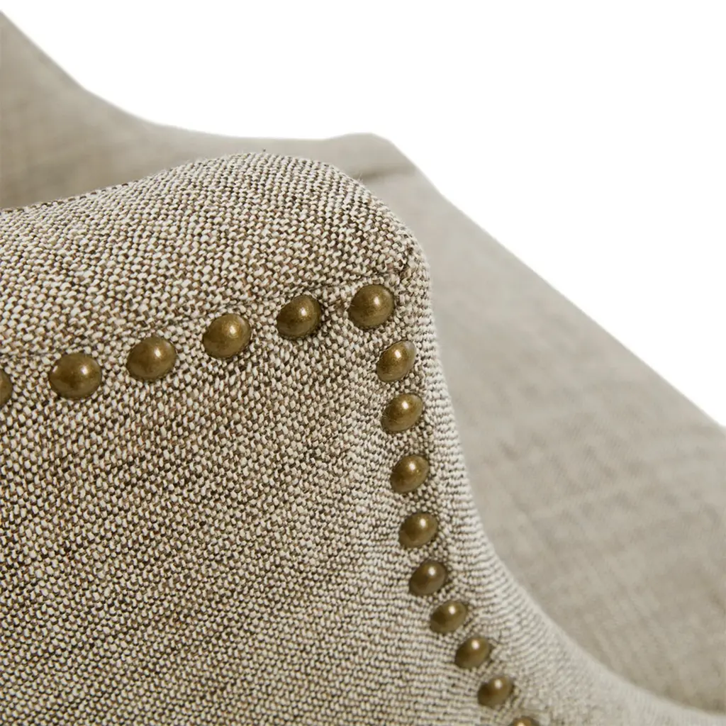 Elevate your dining space with the Madison Park Mateo Swivel Counter Stool. This swivel counter stool is upholstered in a beige tweed fabric and features a low back, for a chic transitional design. The walnut colored solid wood legs contrast the upholstery to create a stunning look. An antique bronze nailhead detailing on the recessed arms and back adds an elegant touch to the design, while the bronze metal kickplate ring provides added durability. Perfect for your kitchen area, this swivel counter stool adds a charming farmhouse-inspired update to your dining decor. Leg assembly required and tools are provided.