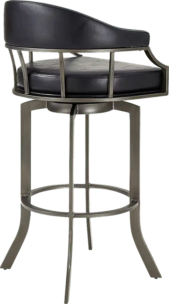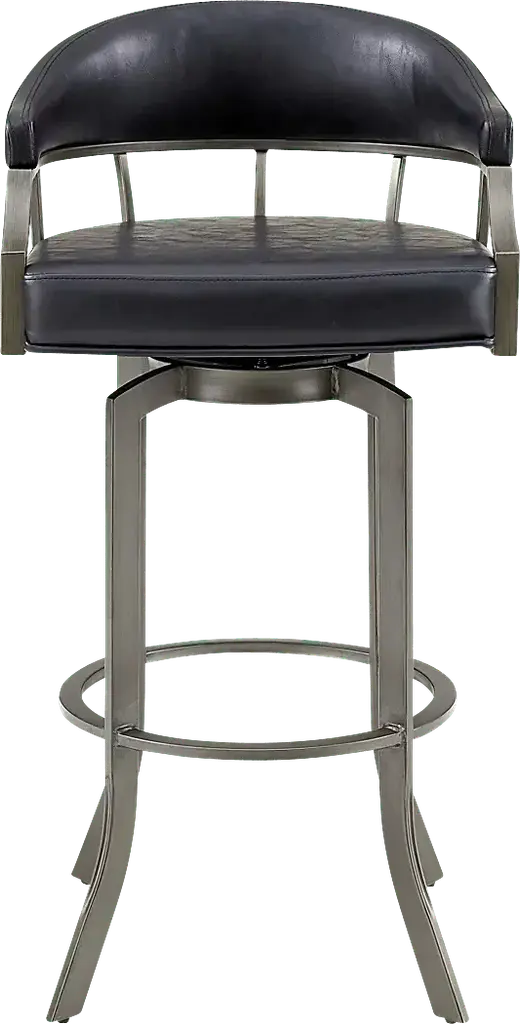 The Bulltales black counter height stool will add a touch of elegance to your home no matter what the design theme. The soft faux leather upholstery allows easy clean up and swivels for optimal convenience. The Bulltales features a metal frame and faux leather upholstery. Customer assembly is required.