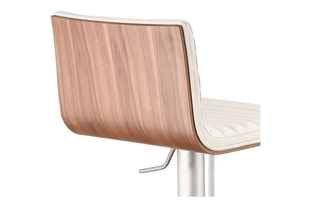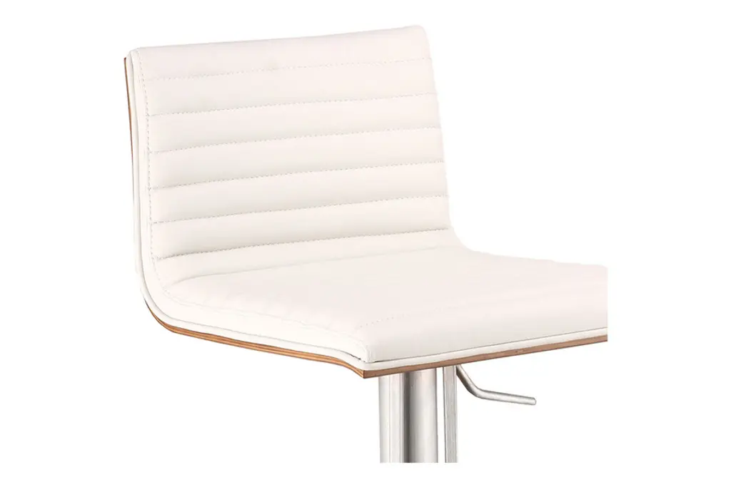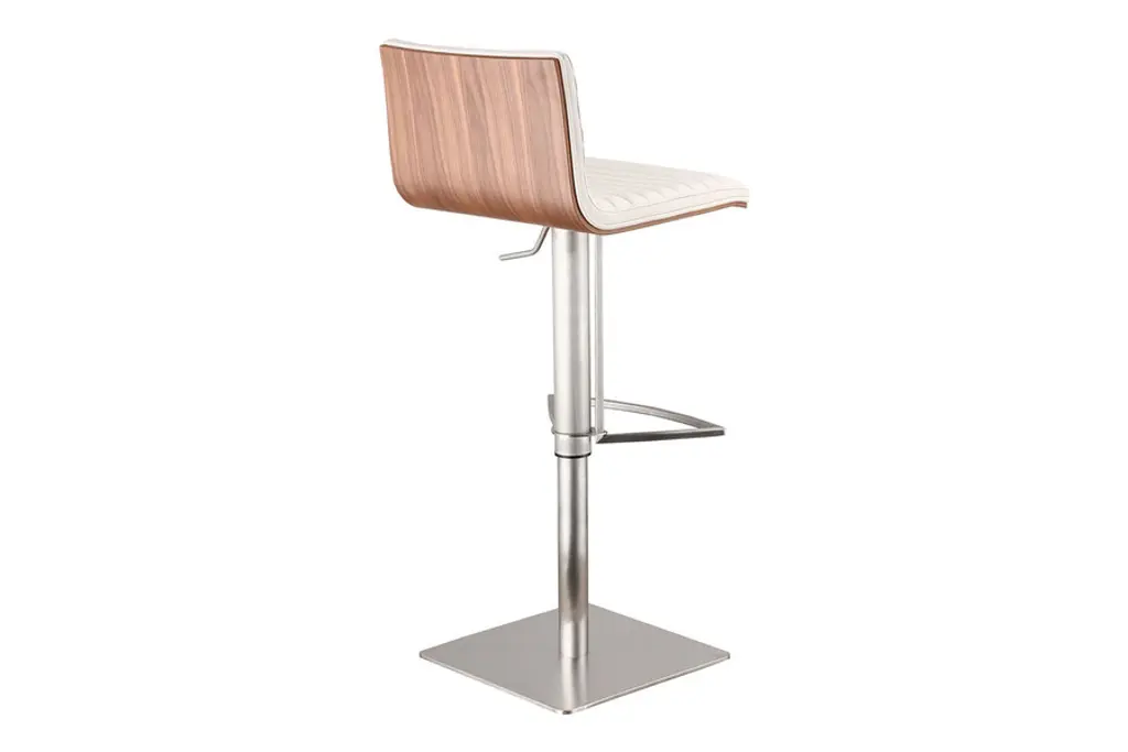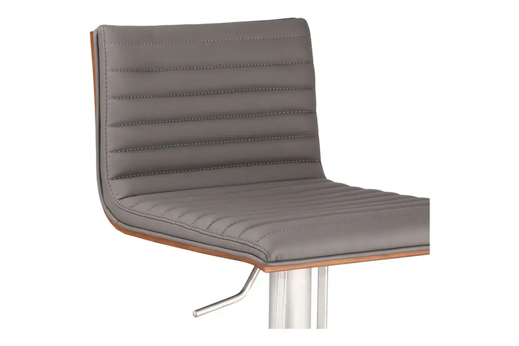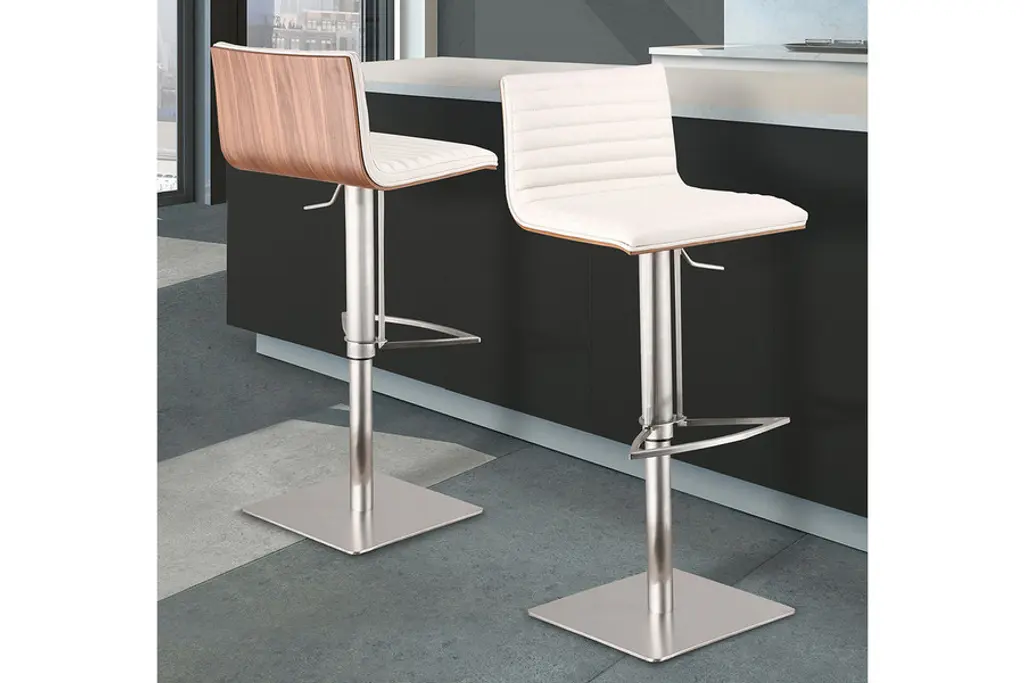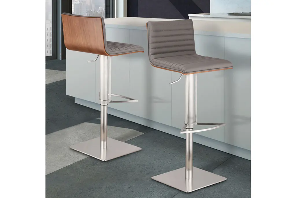 Whether you are looking for bar stools for your home bar or kitchen, you are going to love the Cafe Adjustable Bar Stool from the Armen Living collection. Their contemporary design enhances your home bar or kitchen design to give you a beautiful chic look. Finished using brushed stainless steel and your choice of colors, these stools are finished with seat wrapped in PU and a back made of walnut veneer. The base swivels and the height is adjustable to make it completely adjustable to your needs. The seat height adjusts from 22" to 32". The overall height adjusts from 33" - 43".