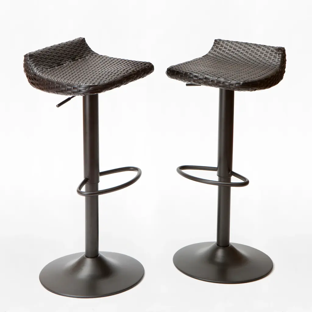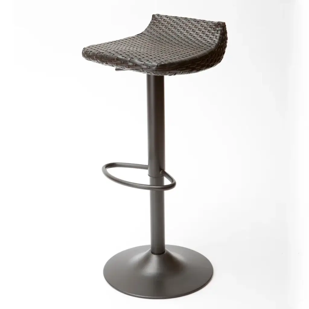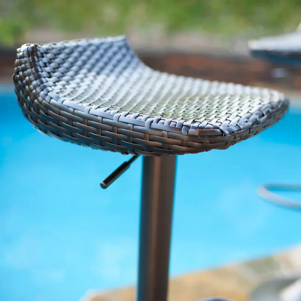 Arriving as a 2-piece set, this outdoor bar stool is a sleek, stylish way to enjoy drinks and good company on your patio or deck. It features an aluminum pedestal base with a powder-coated finish that's also water-, stain-, and UV-resistant. The backless bucket seat is wrapped in woven rattan and swivels for a wide range of movement toward the snacks or your preferred conversation. We love that the height is adjustable, making it easy to accommodate tables of varying shapes and sizes.