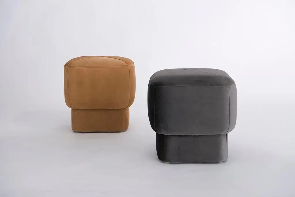 Listed price is for the Capper low stool and Cottswald by Moore & Giles nubuck. COL is also available, with a List price of $ 1,760.00.The Capper Low Stool is also available in fabric, with a List price of $ 2,026.00 in Comfort Zone by HBF fabric, and $ 1,570.00 in COM.Prices exclude packing. Collection of sofas, lounge chairs, side chairs, and stools with common design language of capped tops and formed back rest system. Lounge chairs can be specified with swivel or static base, metal base, or metal base with attached side table. Side chairs are offered with fully upholstered swiveling or static base or metal base. Stools are offered in both bar and counter sizes. This collection offers a seating option with distinctive personality, various options, and cradling comfort.Wood construction with upholstered body. Upholstery may be sourced COM, COL, or suggested fabrics and leather. (COM requirements = 2 yards.)