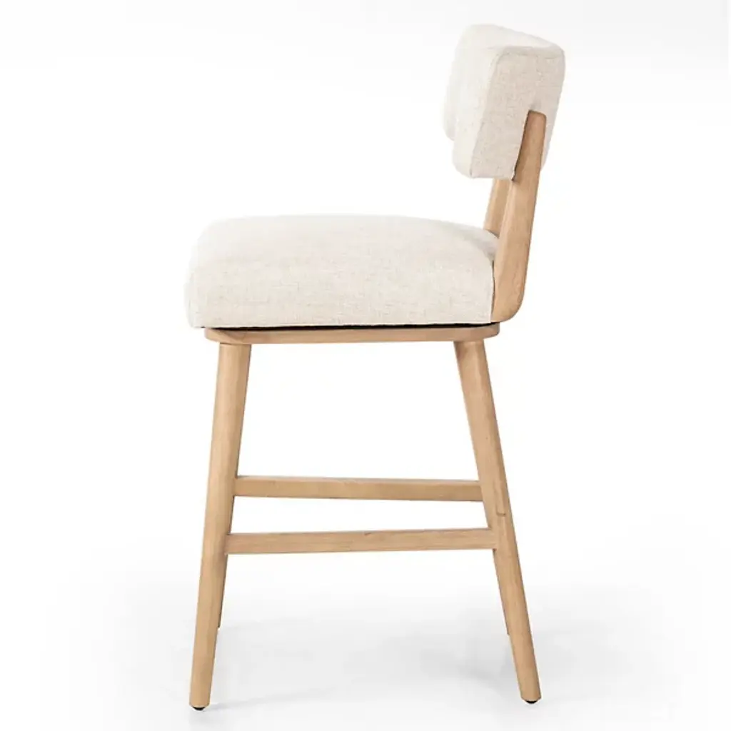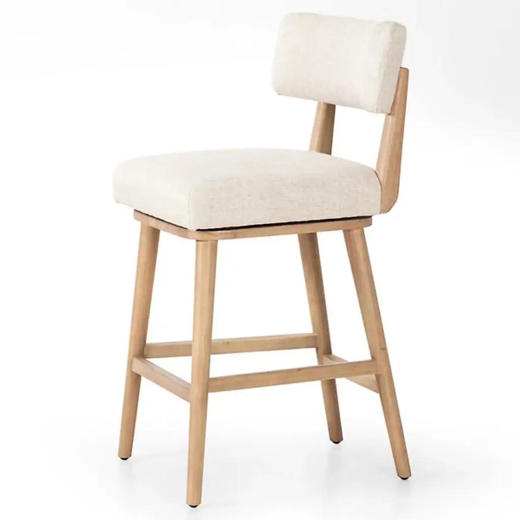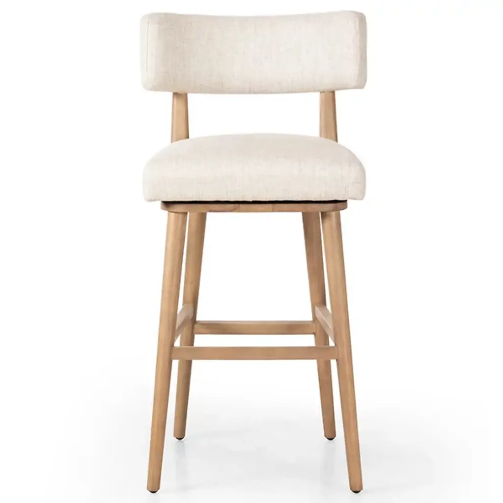 Introduce a touch of sophistication to your dining space with the Cardell Swivel Counter/Bar Stool from Four Hands, crafted from natural solid parawood and boasting a gracefully curved barrel back for everyday comfort. Its memory swivel feature ensures seamless movement, while the plush cushioned seat and back, upholstered in a textural woven fabric, invite you to sit back and relax. With a blend of transitional and contemporary styles, this stool offers elegance and modern flair, making it a versatile addition to any kitchen or dining area seeking a perfect balance of comfort and style.
