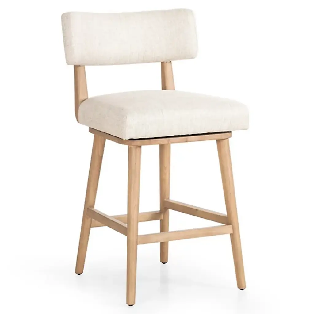 Introduce a touch of sophistication to your dining space with the Cardell Swivel Counter/Bar Stool from Four Hands, crafted from natural solid parawood and boasting a gracefully curved barrel back for everyday comfort. Its memory swivel feature ensures seamless movement, while the plush cushioned seat and back, upholstered in a textural woven fabric, invite you to sit back and relax. With a blend of transitional and contemporary styles, this stool offers elegance and modern flair, making it a versatile addition to any kitchen or dining area seeking a perfect balance of comfort and style.