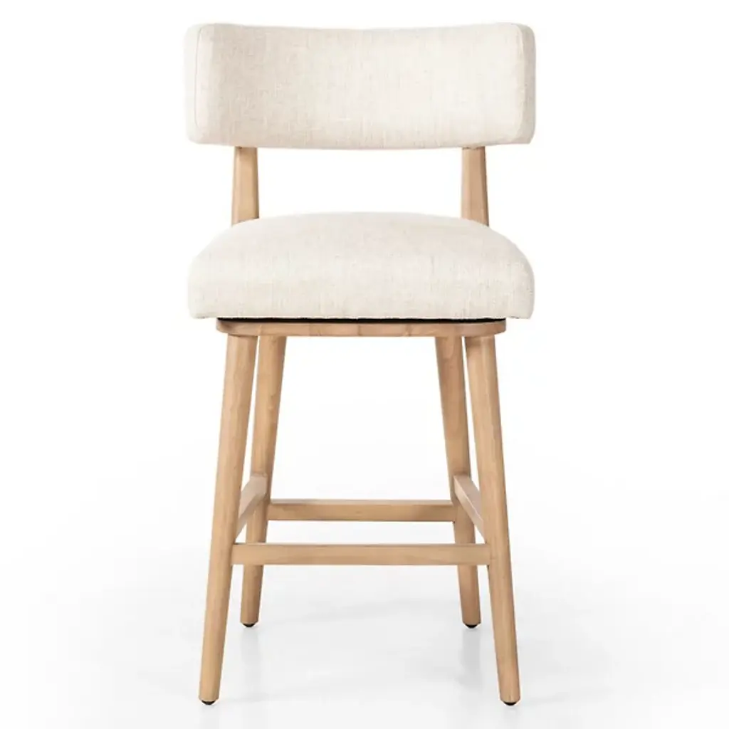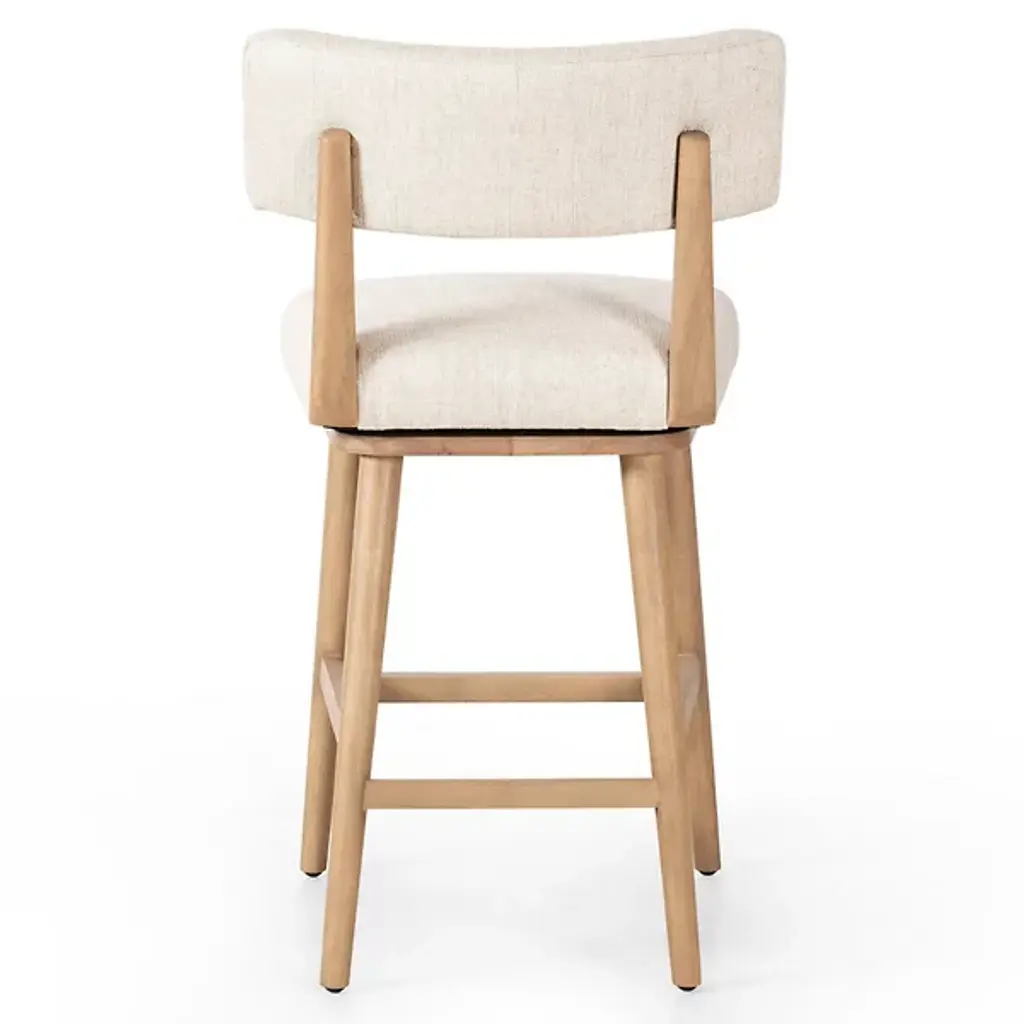 Introduce a touch of sophistication to your dining space with the Cardell Swivel Counter/Bar Stool from Four Hands, crafted from natural solid parawood and boasting a gracefully curved barrel back for everyday comfort. Its memory swivel feature ensures seamless movement, while the plush cushioned seat and back, upholstered in a textural woven fabric, invite you to sit back and relax. With a blend of transitional and contemporary styles, this stool offers elegance and modern flair, making it a versatile addition to any kitchen or dining area seeking a perfect balance of comfort and style.